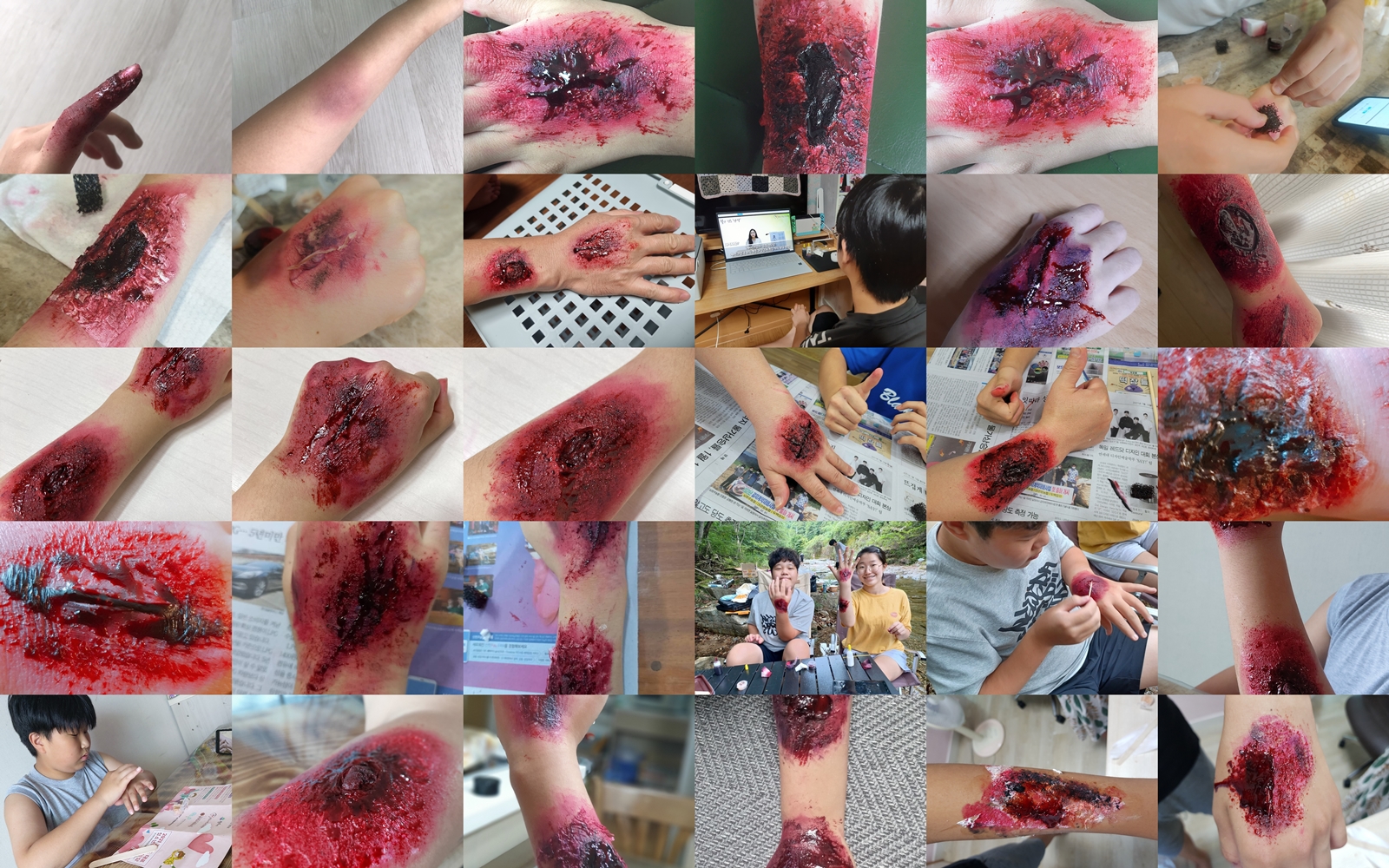 특수분장은 더마왁스와 인공 피를 이용한 베인분장, 찢긴 분장을 해 보며