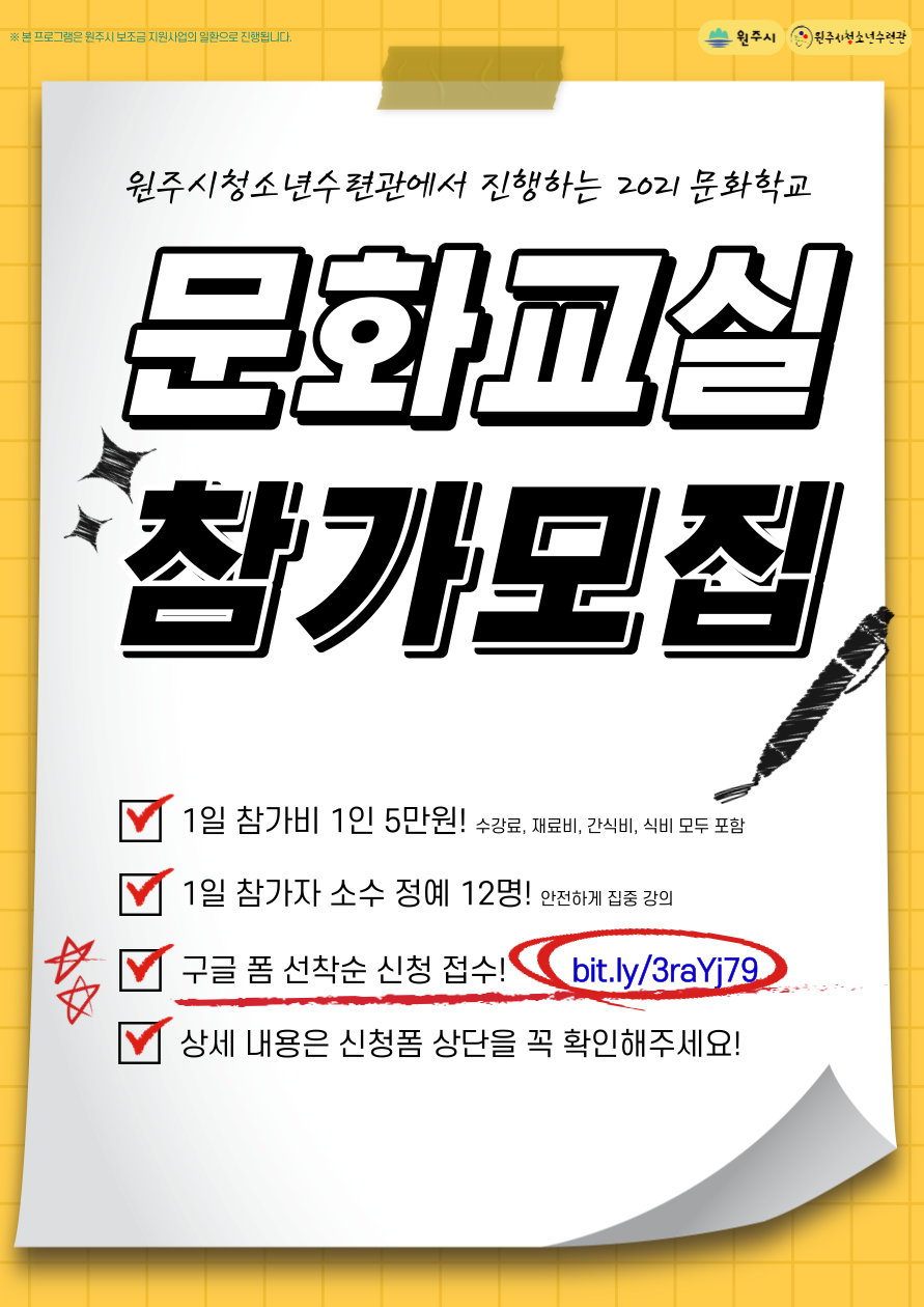🎉2021 문화학교 문화교실 참가자를 모집합니다🎉