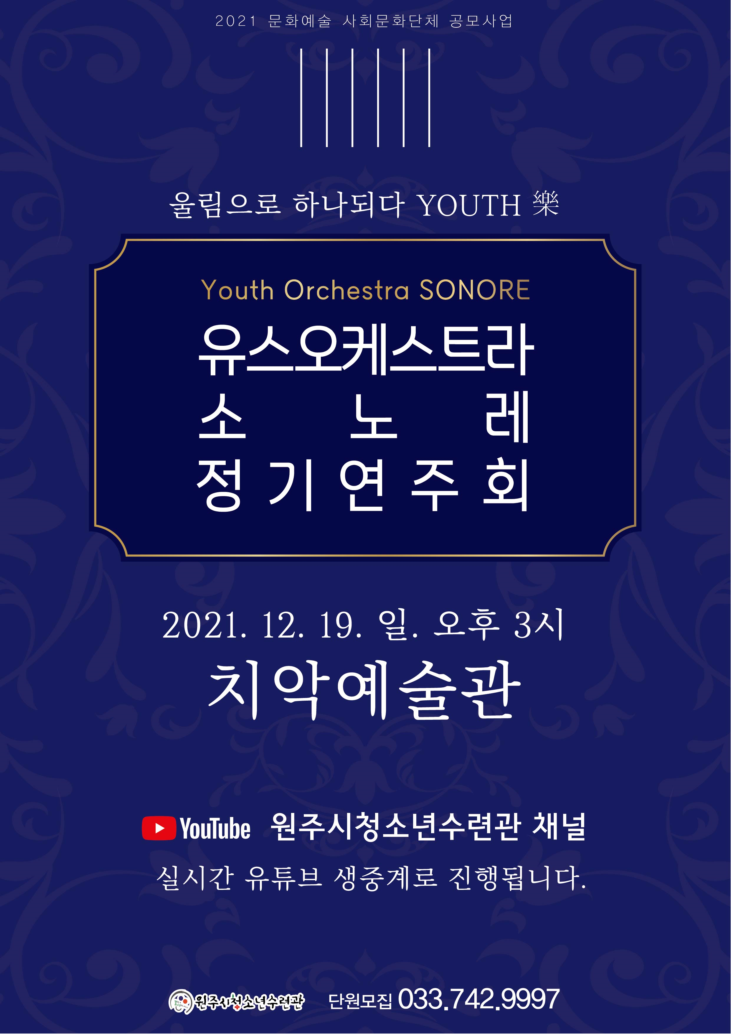 원주시청소년수련관 소속 유스오케스트라 소노레가 정기연주회를 진행합니다.