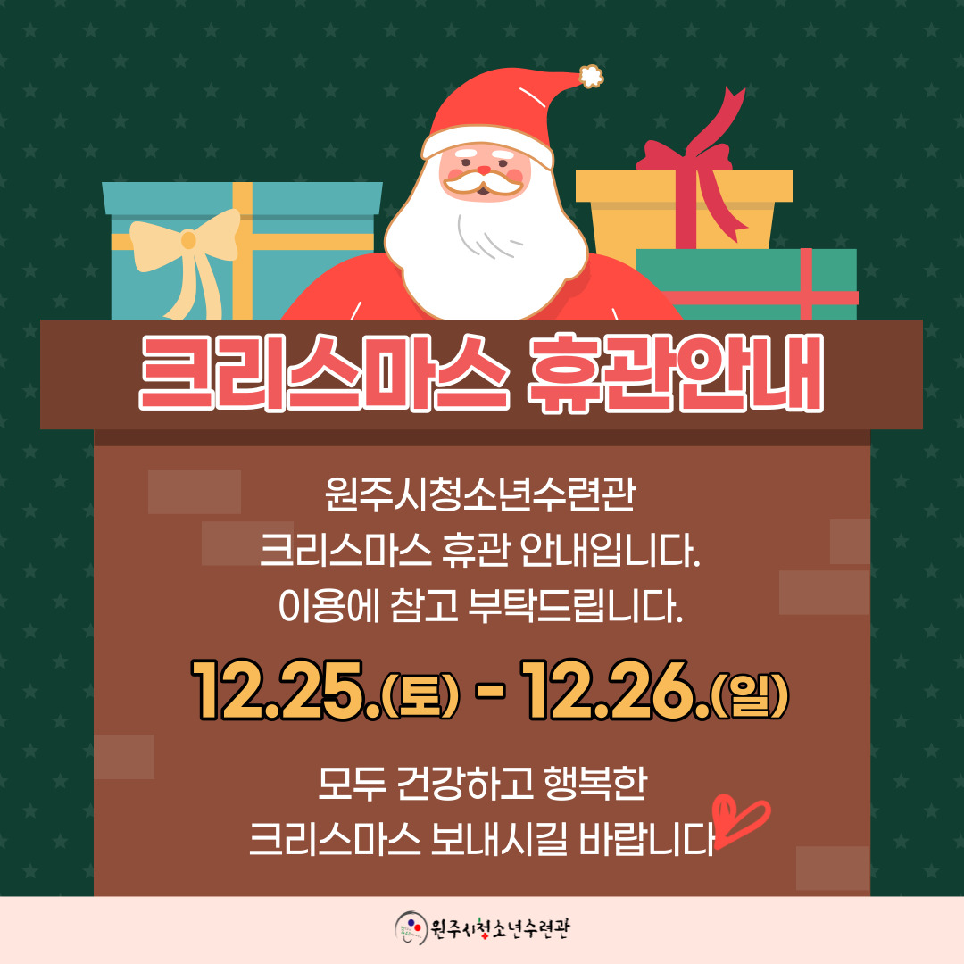 원주시청소년수련관 크리스마스 휴관 안내입니다.