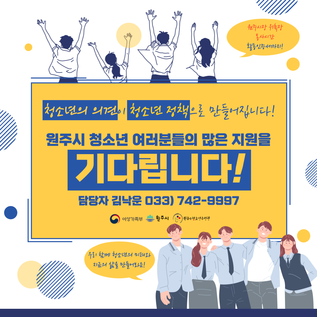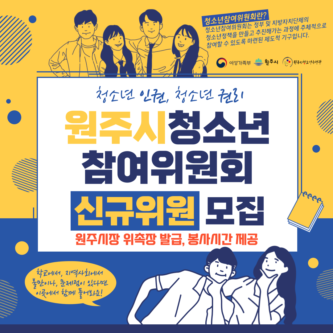 2022년 원주시청소년참여위원회 위원 모집(모집완료시까지)