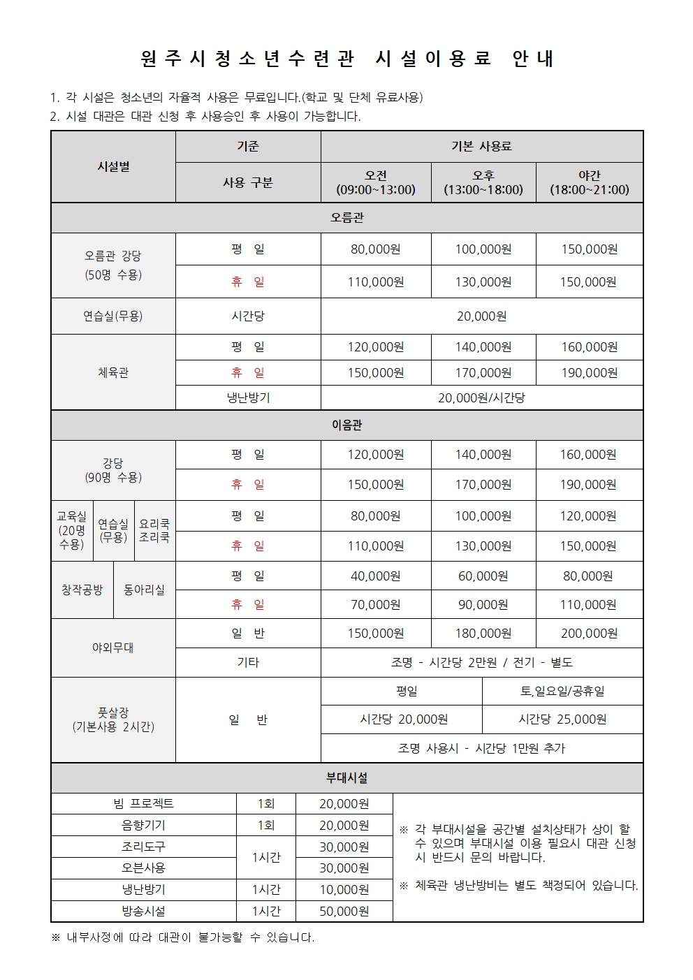 원주시청소년수련관 시설이용료.hwp