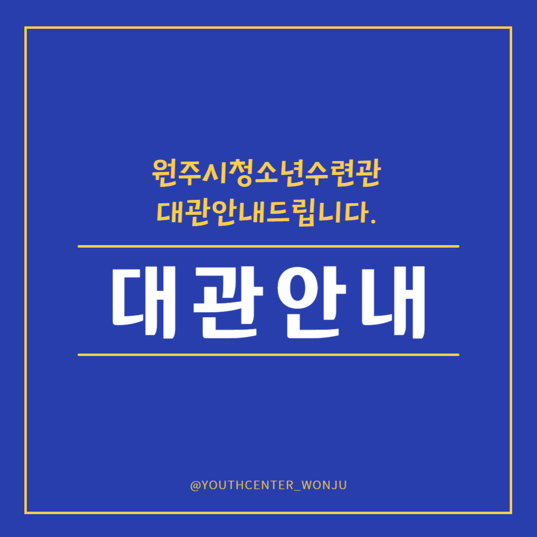 대관 비용 확인하러가기 : https://xn--zb0bx4fhshyokbuas9an8odtebnk.kr/63 대관안내 일반 청소년은 네이버예약을 통해 무료 사용 가능합니다. (청소년 전용)원주시청소년수련관 네이버예약 바로가기 : https:/