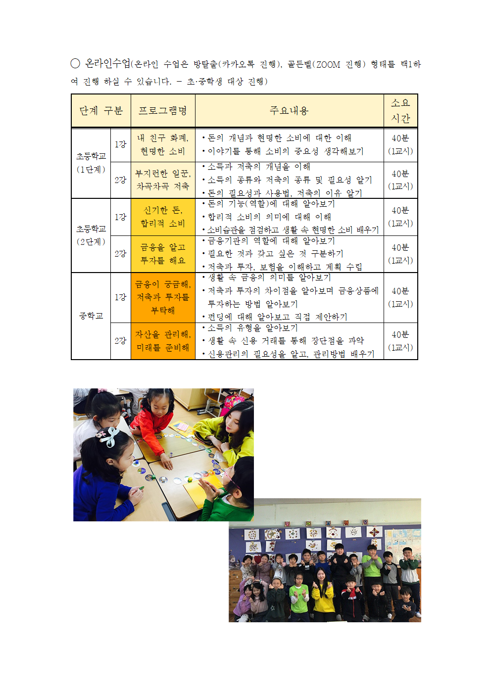 이에 2022년 상반기 교육신청을 받고자 아래와 같이 안내하오니 첨부한 신청서로 신청을 부탁드립니다. 찾아가는 청소년경제금융교실이 잘 진행될 수 있도록 각 학교 및 시설의 많은 신청을 부탁드립니다.
