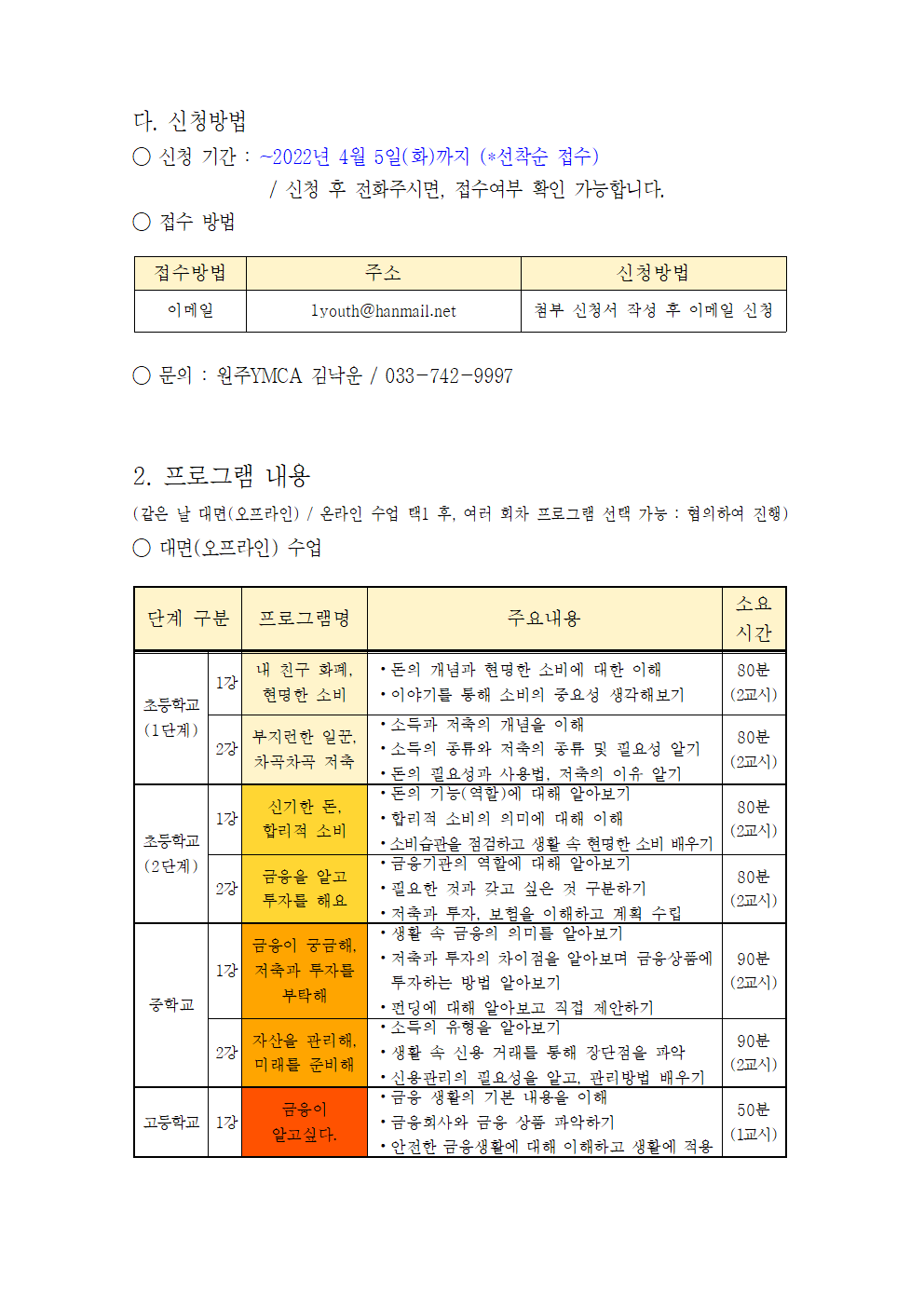 문의 : 원주YMCA 김낙운 / 033-742-9997