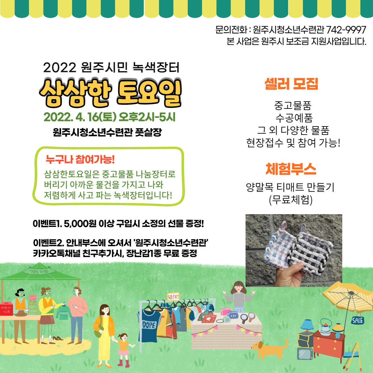원주시민 녹색장터 <삼삼한토요일>이 4월부터 시작됩니다!