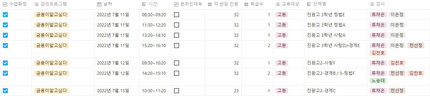 + 진광고등학교 수업 추가