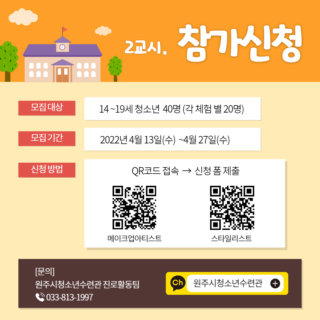 👉 모집대상 : 14 ~19세 청소년 체험 별 각 20명 (선착순 마감)
