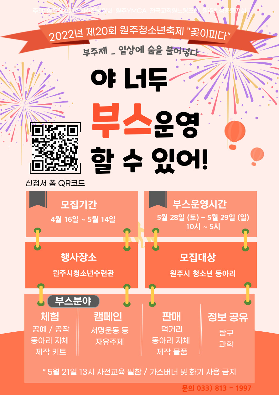 2022년 제20회 원주청소년축제 꽃이피다 동아리부스 모집