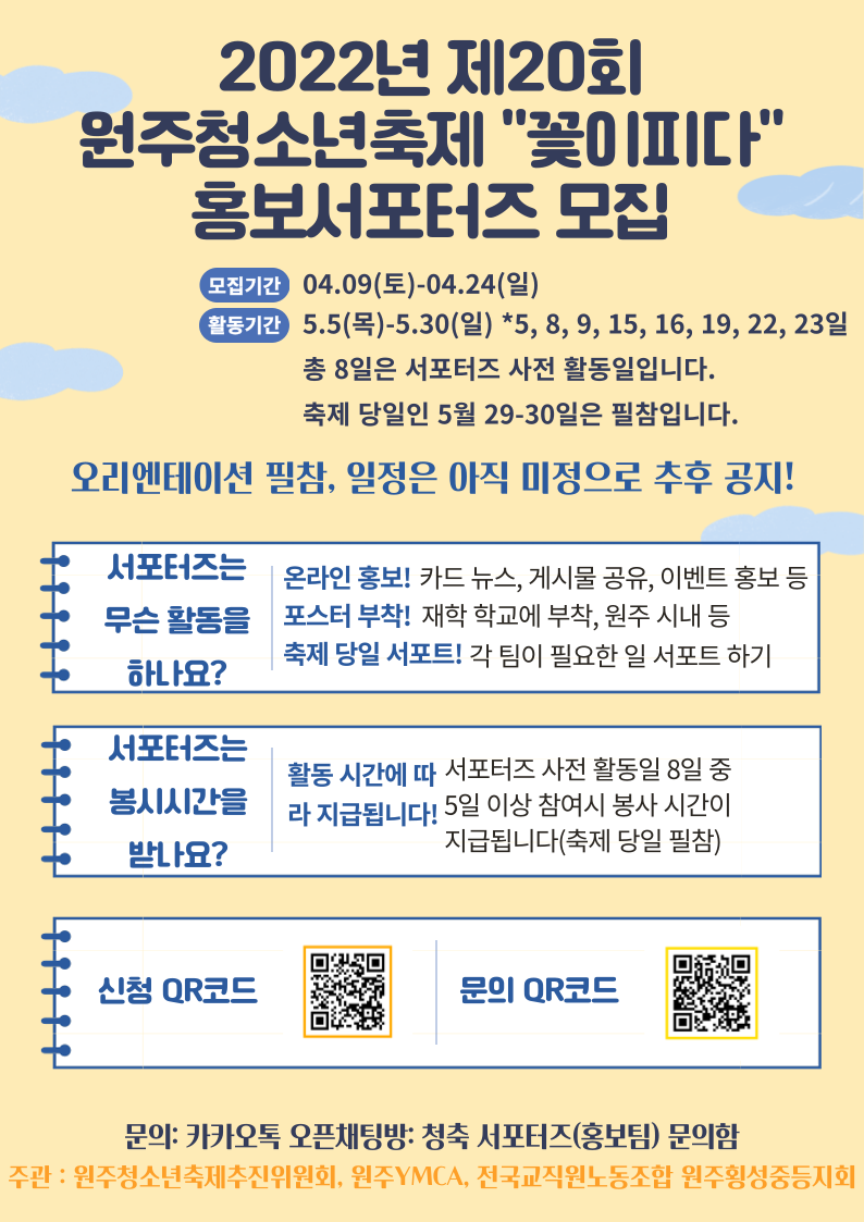 2022년 제20회 원주청소년축제 꽃이피다 청소년 서포터즈 모집