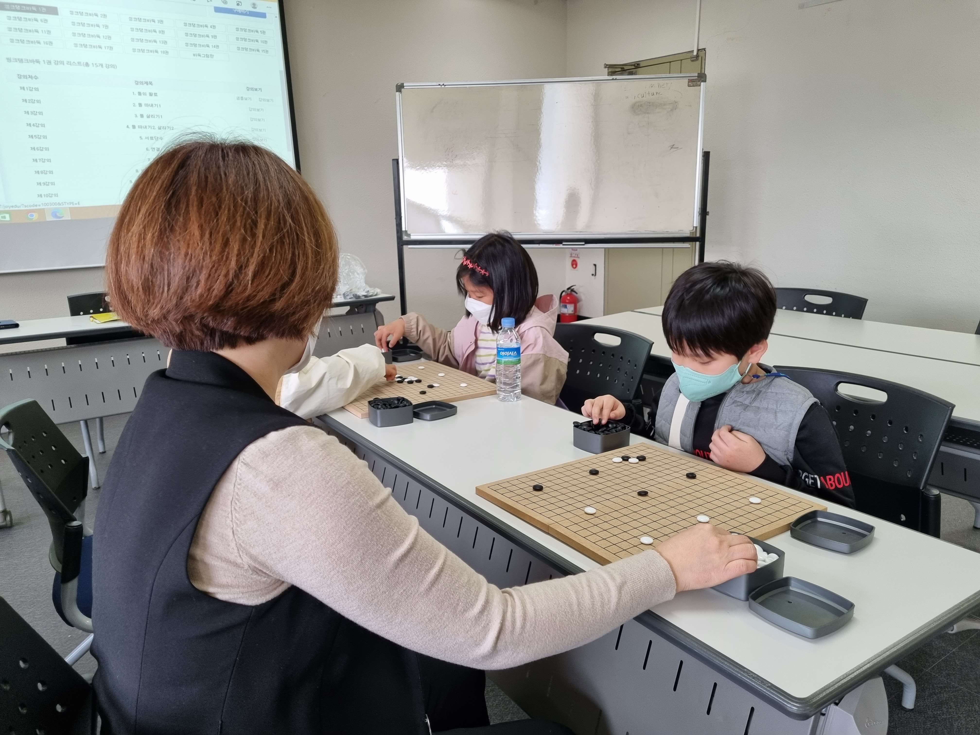 4월 9일부터 7월 2일까지 진행되는 봄학기프로그램 중 '마주앉아 바둑' 통합반 수업 모습입니다.