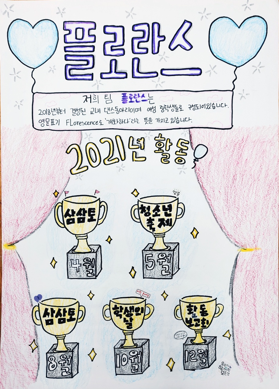 참여동아리 : 소심, 트리라이브, 플로란스, 골든타임, 드림하이, 비바체앙상블, 시나브로, 연합회, 윤슬, 이브, 작은등불, 지천사, 폴라리스, 청소년운영위원회, 청소년참여위원회