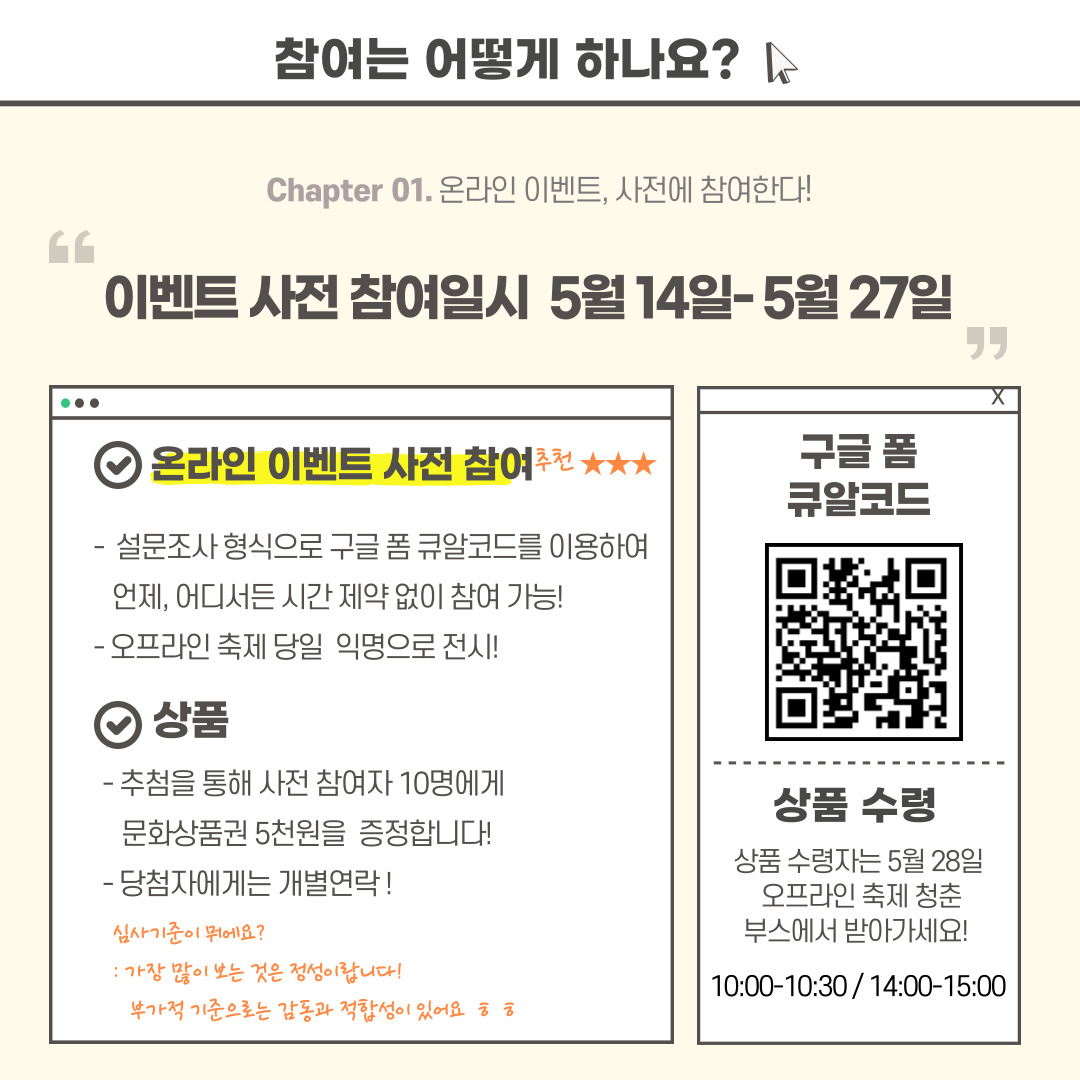 사전신청과 축제 당일 부스에서 현장 참여도 가능합니다!