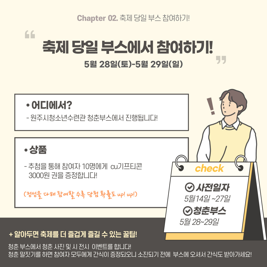 청춘부스에서 진행하는 다양한 이벤트에 참여하고 상품도 받아가세요 :)