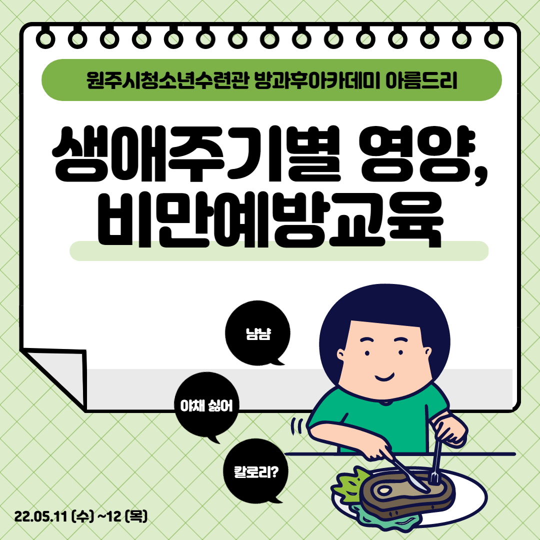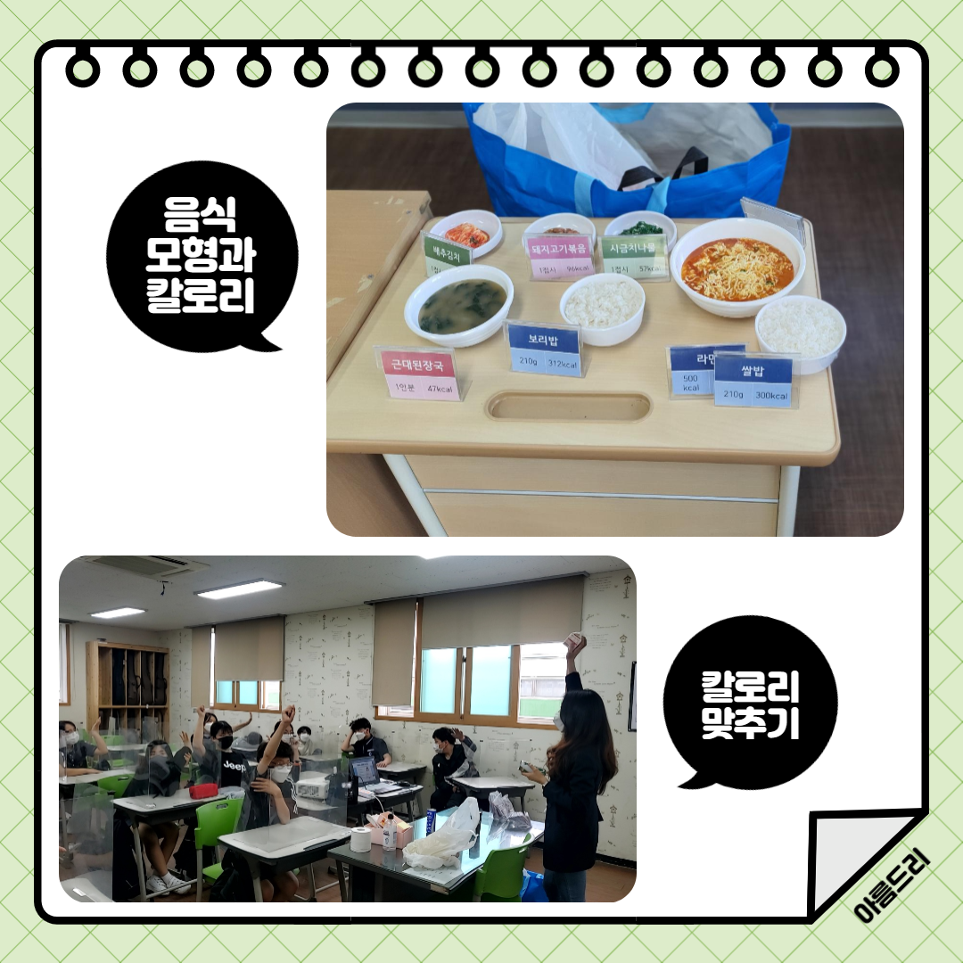 원주보건소와 연계하여 영양소 별 특징, 음식 별 칼로리 등을 배워 영양있는 식단을 짜보며 생애주기별 영양 및 비만예방교육을 진행했습니다😊