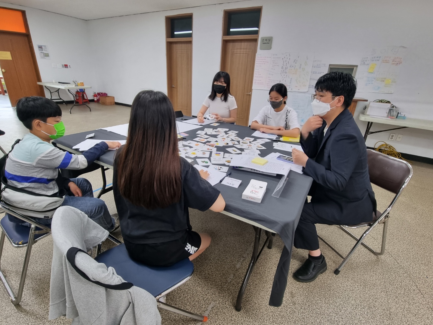 (좌) 그림톡 카드를 활용해 여는 시간을 가지고 자기소개 하기 / (우) 각 조별 해당 조문을 함께 읽고 대화나누기
