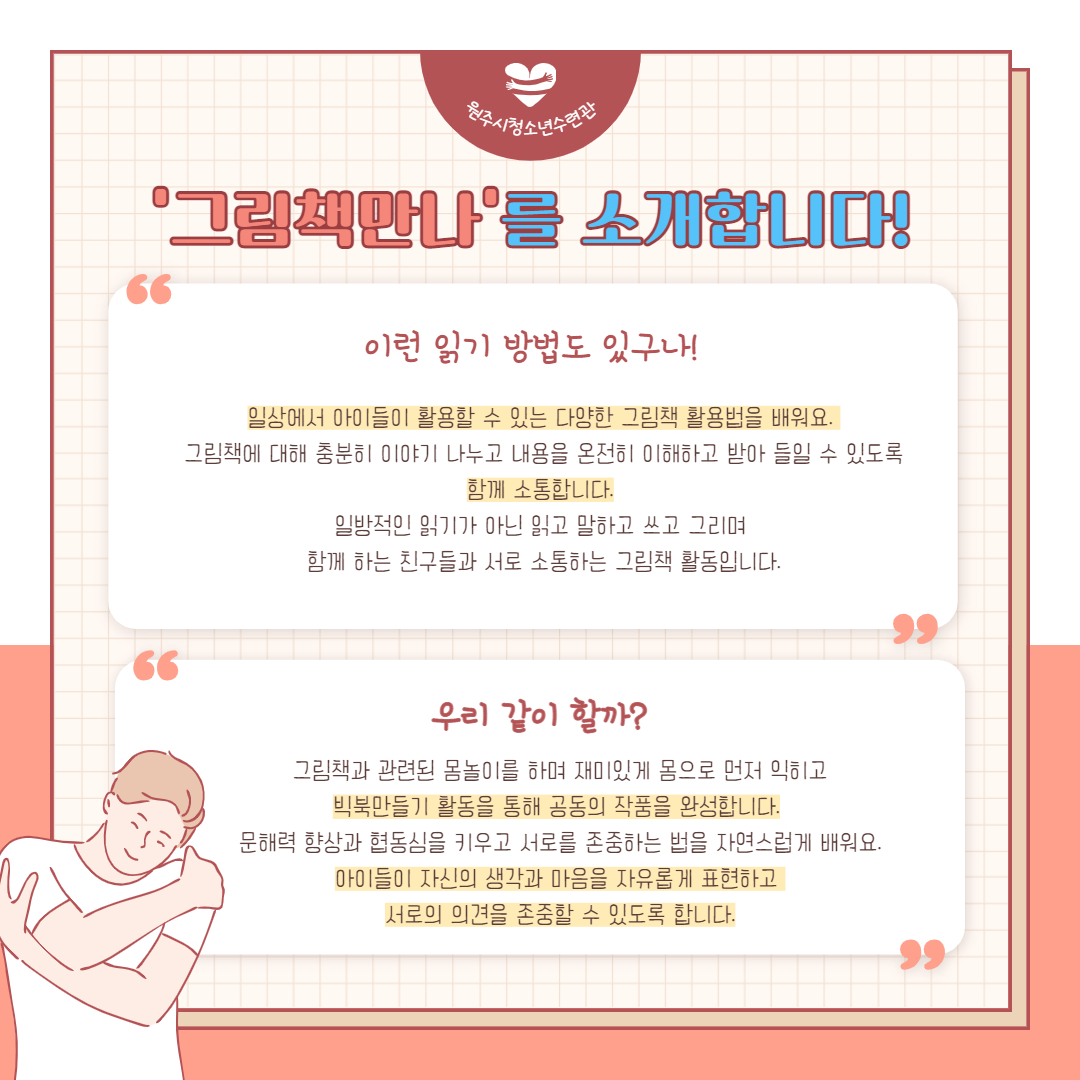 그림책으로 다양한 놀이 및 독서활동을 함께 하는 '그림책만나' 프로그램 2기 참가자를 모집합니다!