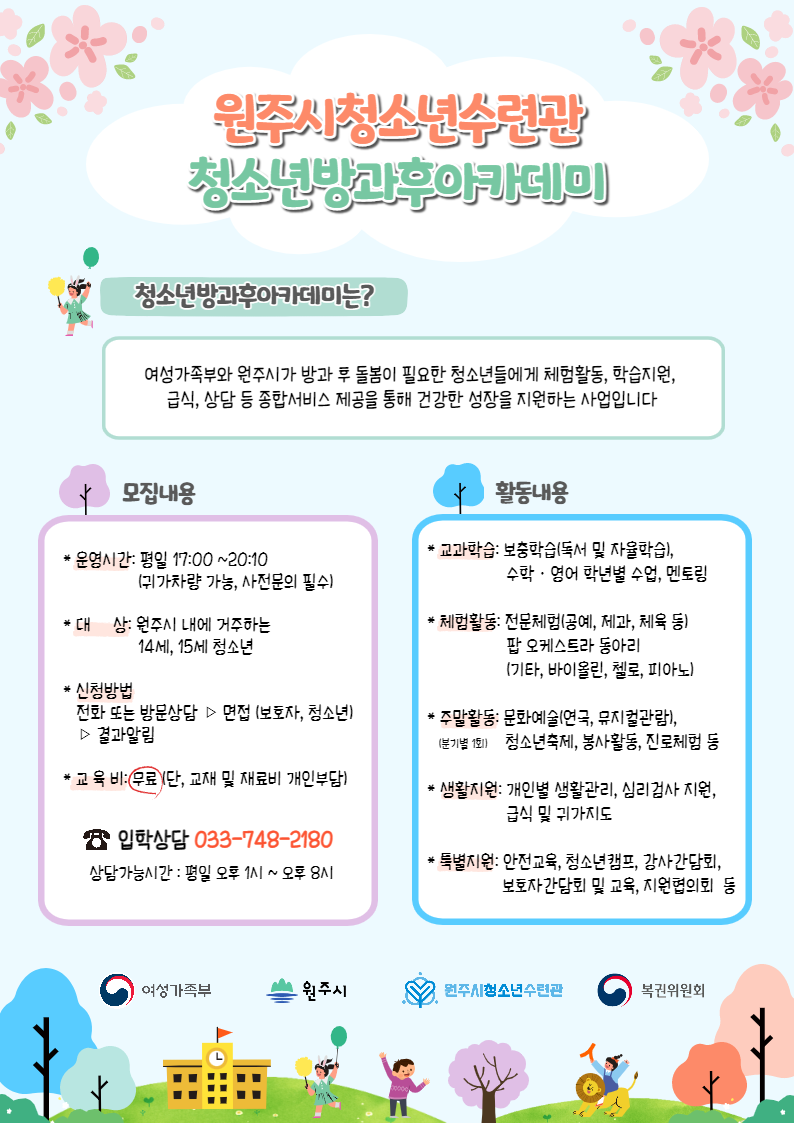 방과후아카데미 사무실 033-748-2180 으로