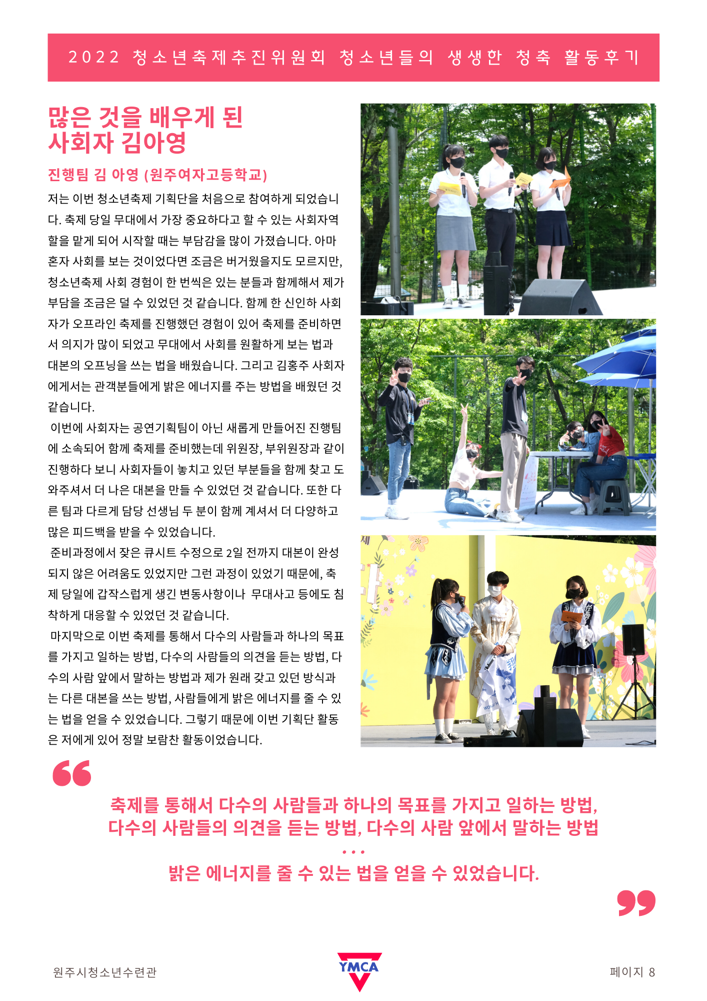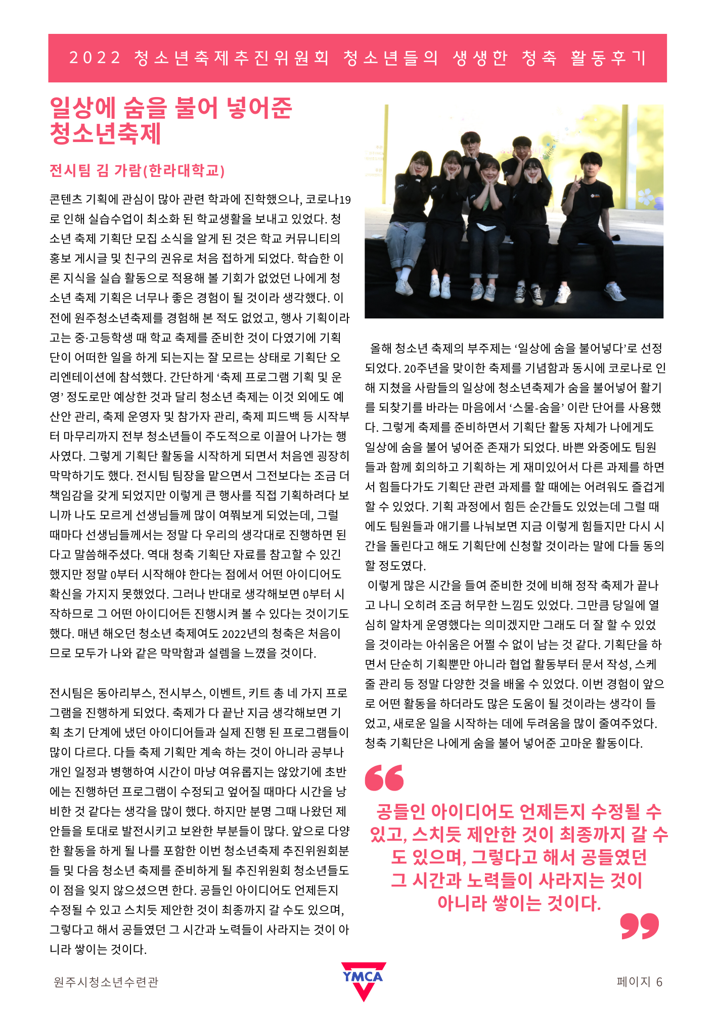 4월-6월 원주시청소년수련관에서 활동했던 청소년들의 다양한 소감문과 활동사진들 보시면서