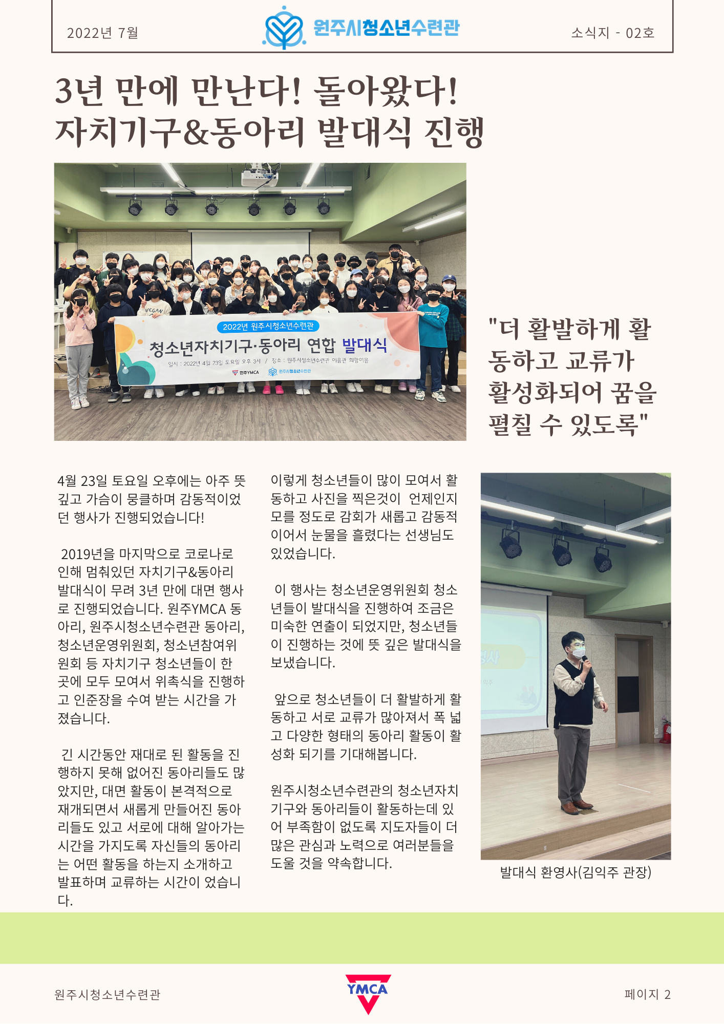 원주시청소년수련관 뉴스레터 발간_2호_2022.07.08