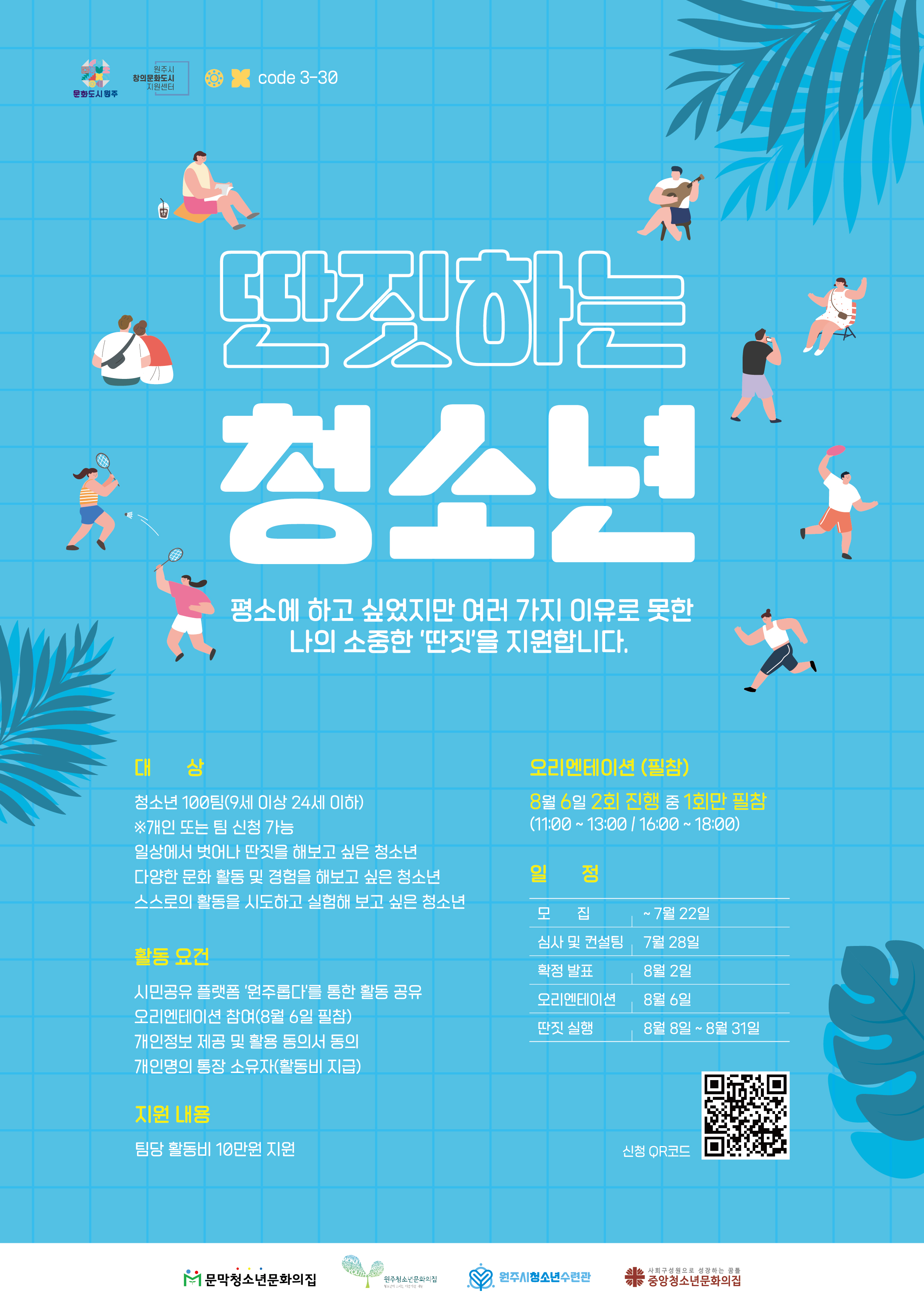 이 프로젝트는 청소년테이블 원주시창의문화도시지원센터, 원주시청소년수련관, 원주청소년문화의집, 문막청소년문화의집, 중앙청소년문화의집이 함께합니다!
