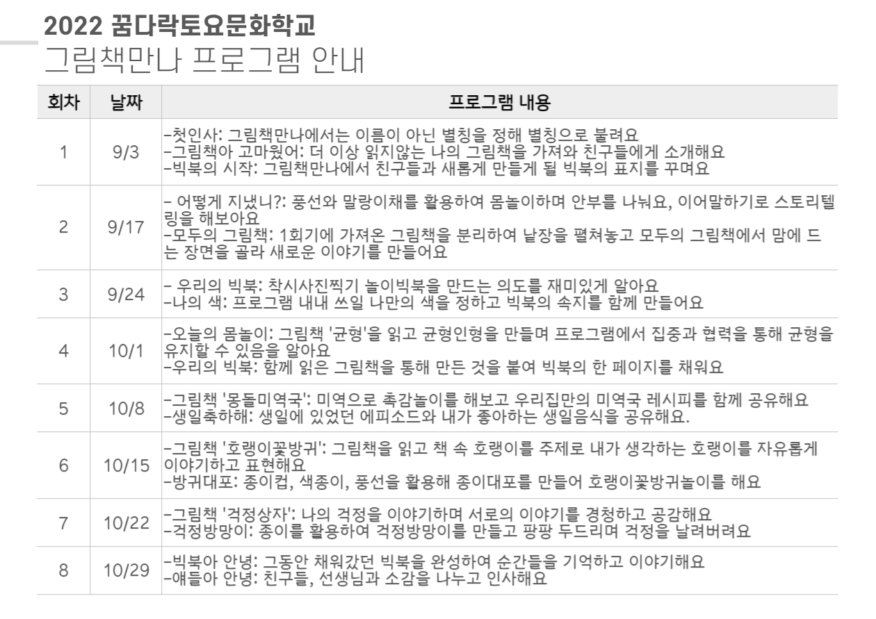 2022년 꿈다락토요문화학교 '그림책만나' 참가신청