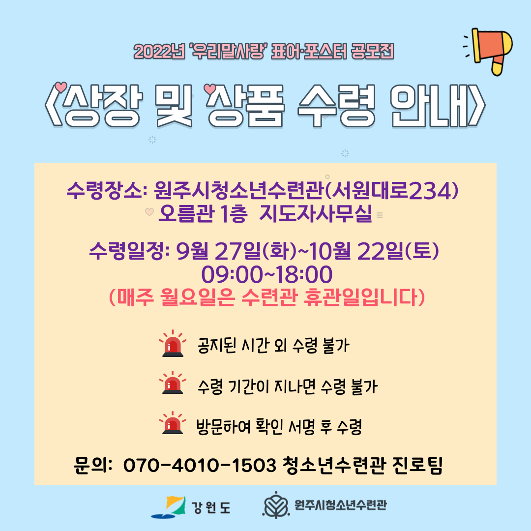 아래 안내문을 참고하시고 상장 및 부상을 꼭 수령하기 바랍니다.