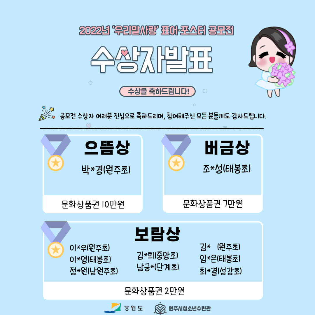 '우리말사랑 표어 및 포스터 공모전' 수상자가 선정되었습니다!!