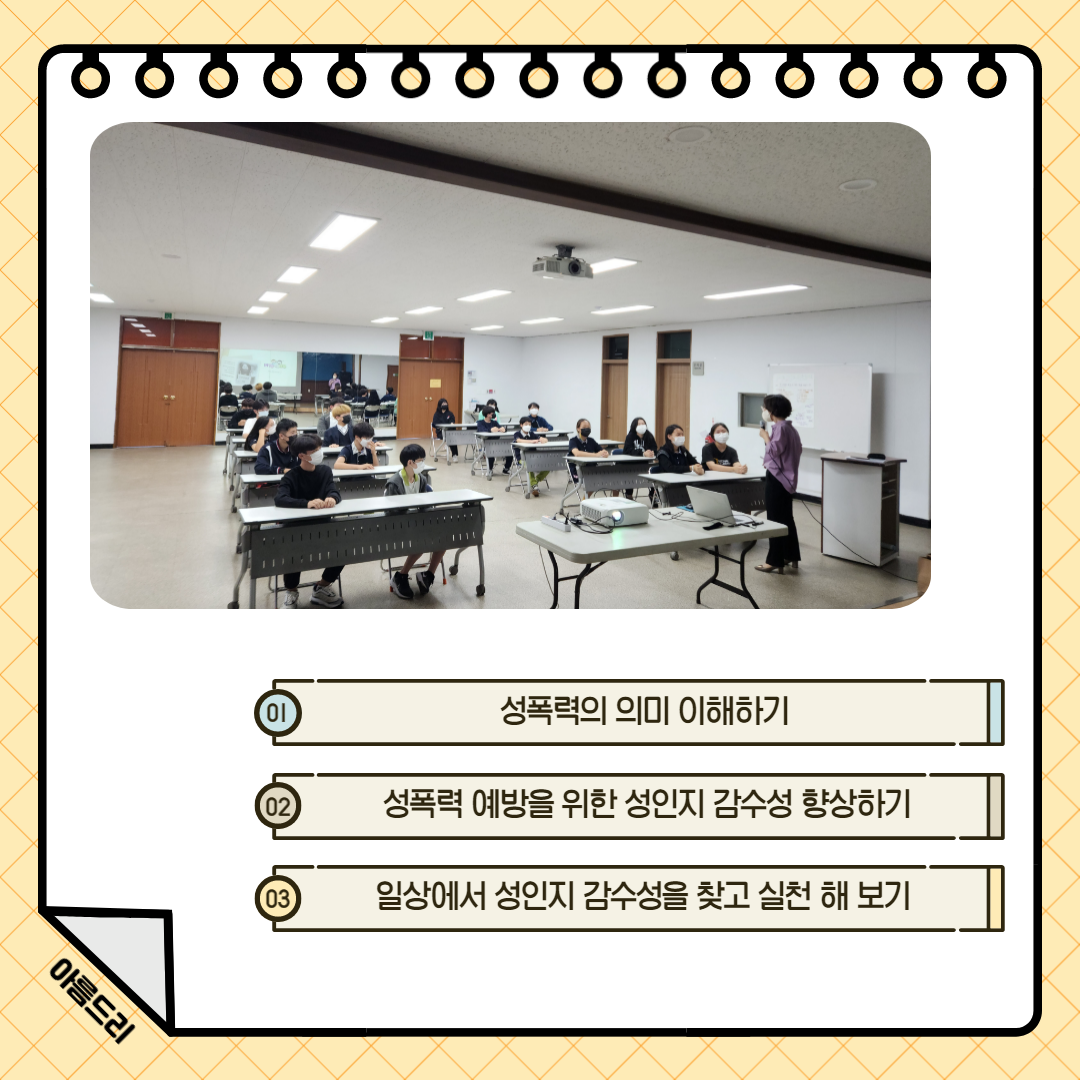 9월 마지막 주, 아름드리 재량활동으로 성인지감수성 교육을 진행하였습니다 😊