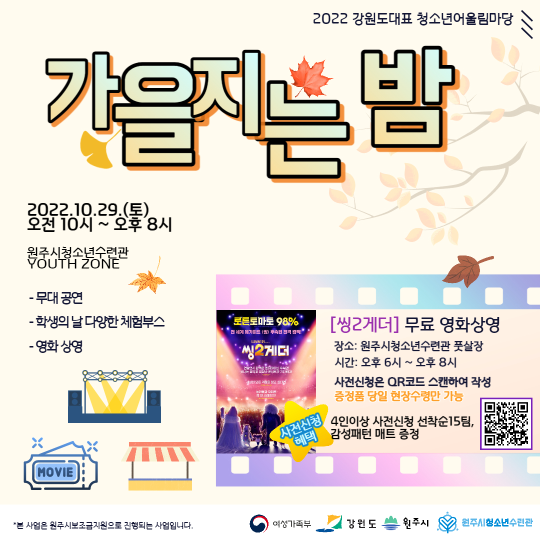 강원도 대표 청소년어울림마당 가을지는 밤, [영화 사전신청]