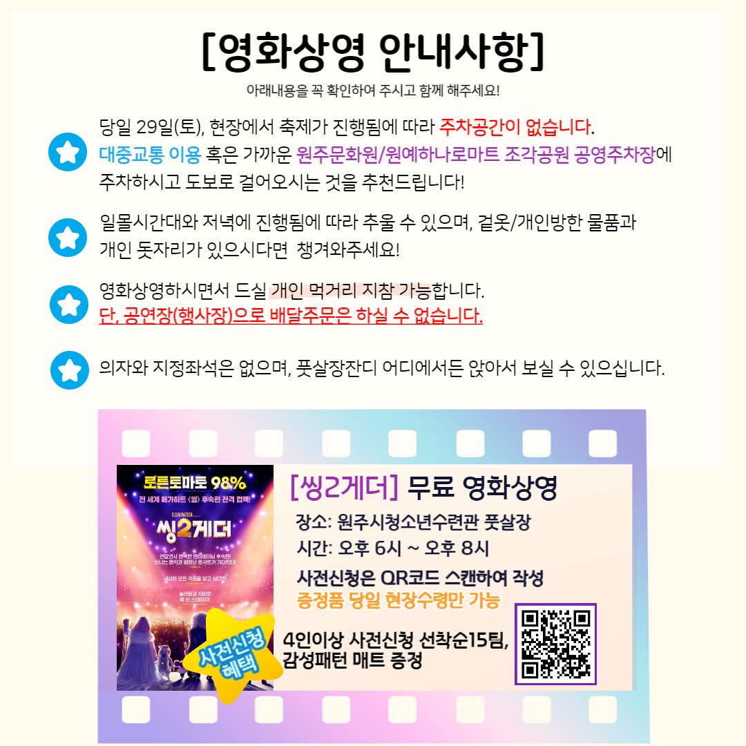 #원주시청소년수련관 #원주시 #강원도대표청소년어울림마당 #청소년어울림마당 #가을지는밤 #야외영화상영