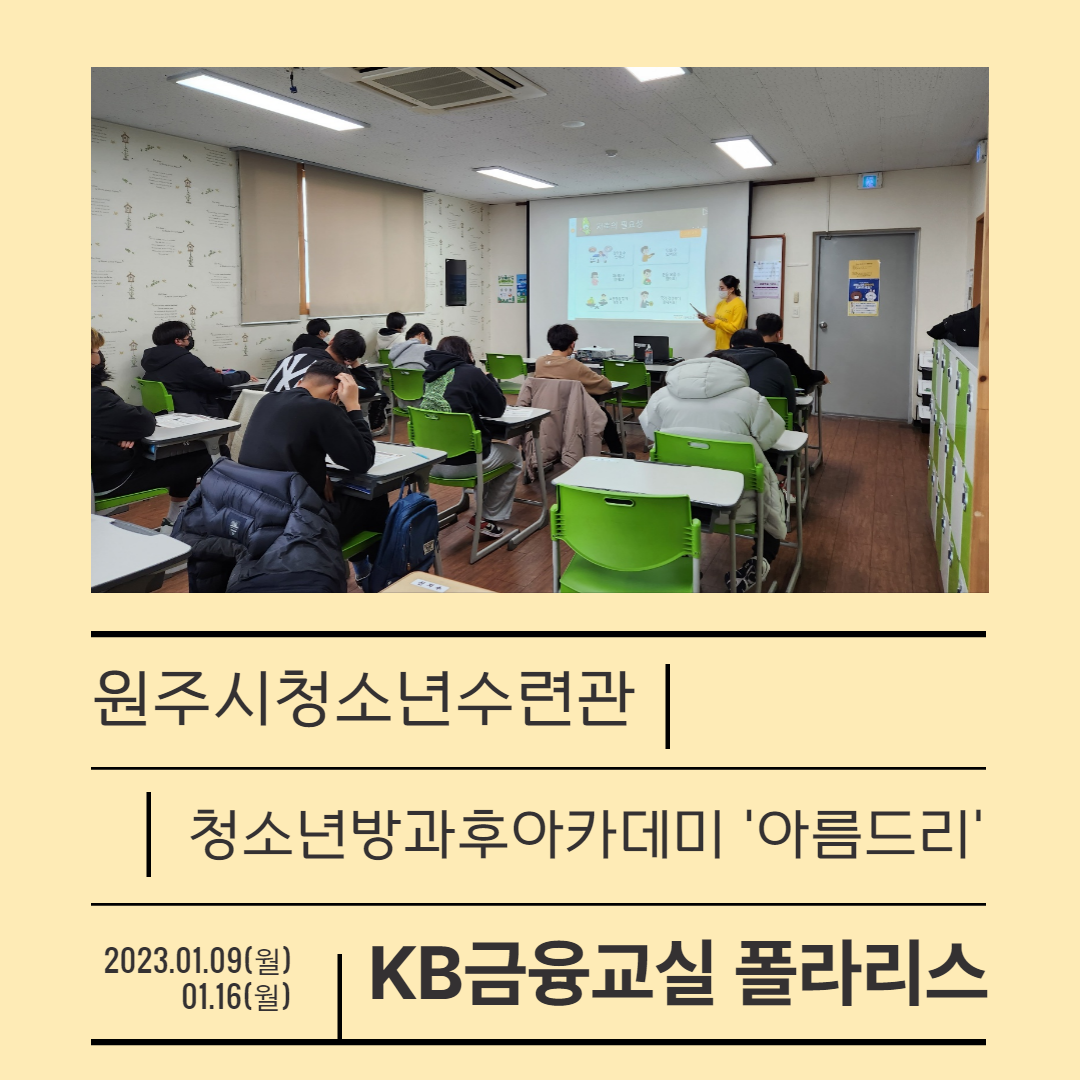 #원주시청소년수련관 #방과후아카데미 #아름드리 #아름드리소식 #경제금융교육 #폴라리스 #KB-YMCA #찾아가는경제교실