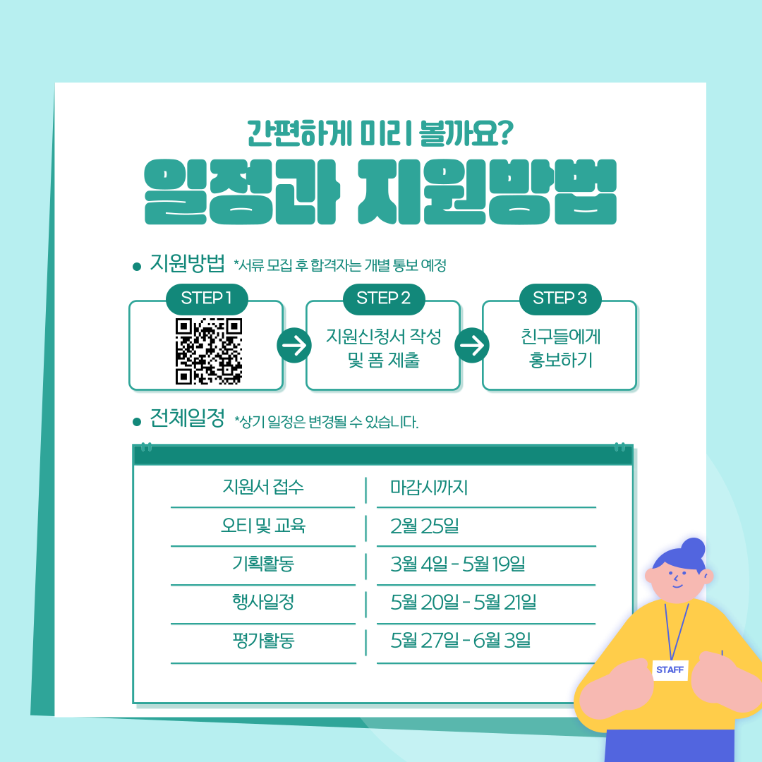 ▶ 활동일정 : 2월 25일 ~ 6월 3일까지