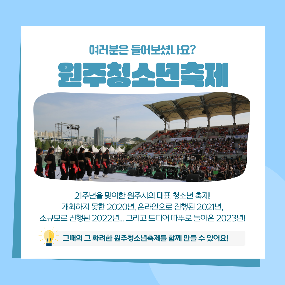 2023년 청소년들의 축제를 함께 기획할 청소년 여러분을 모집합니다!