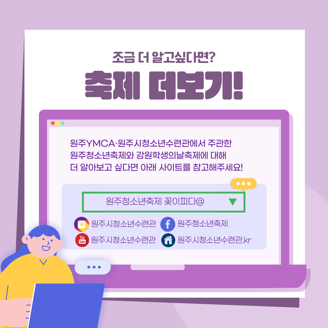 ※ 빠른 문의는 카카오톡 채널 '원주시청소년수련관' 추가하여 일대일 문의 주세요!