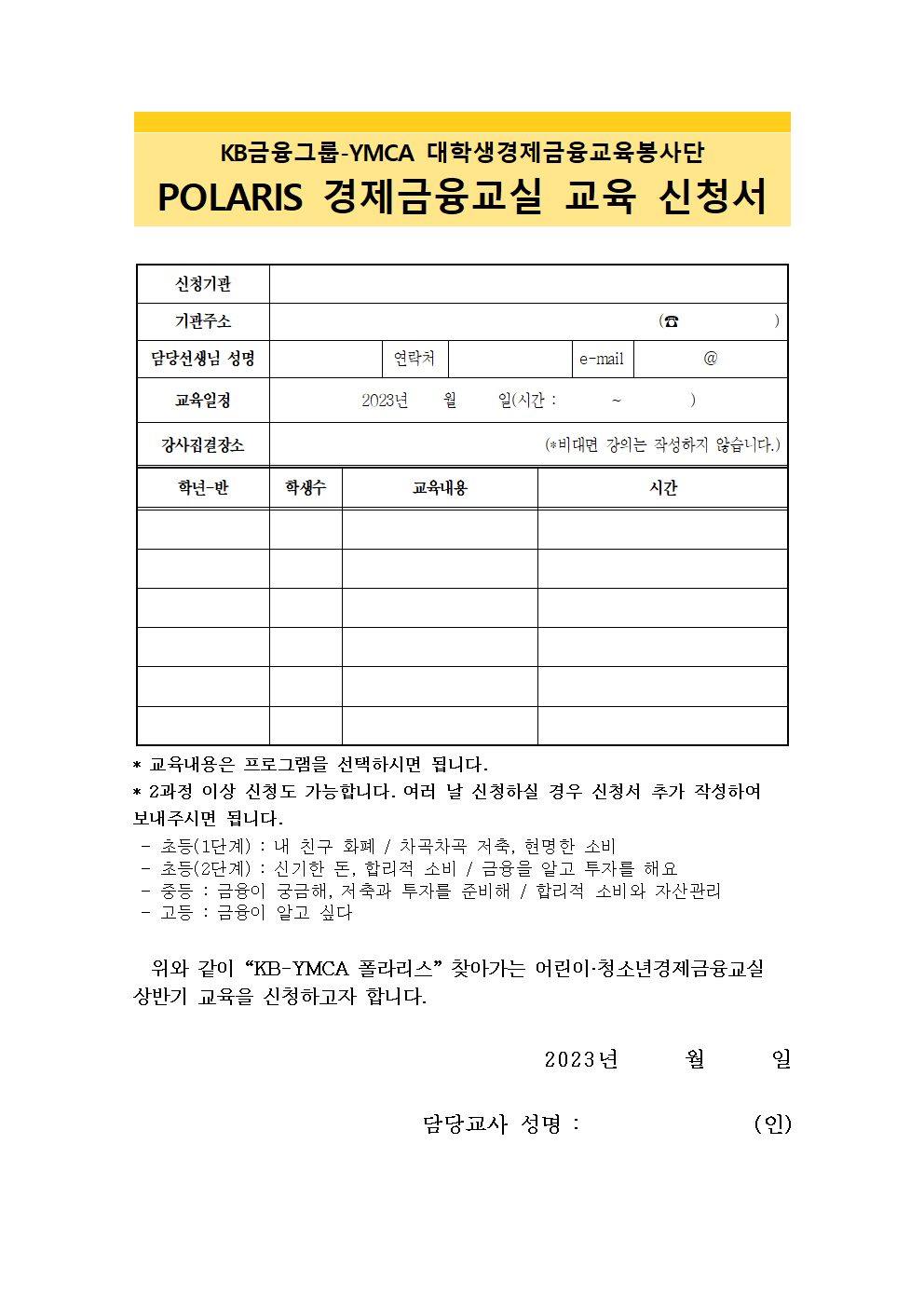 2023폴라리스 수업신청서 양식.hwp