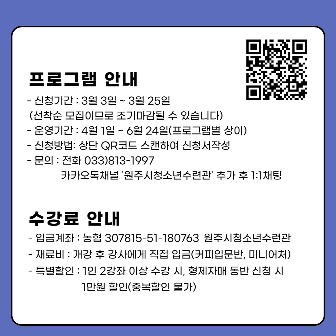 안녕하세요 원주시청소년수련관입니다😊