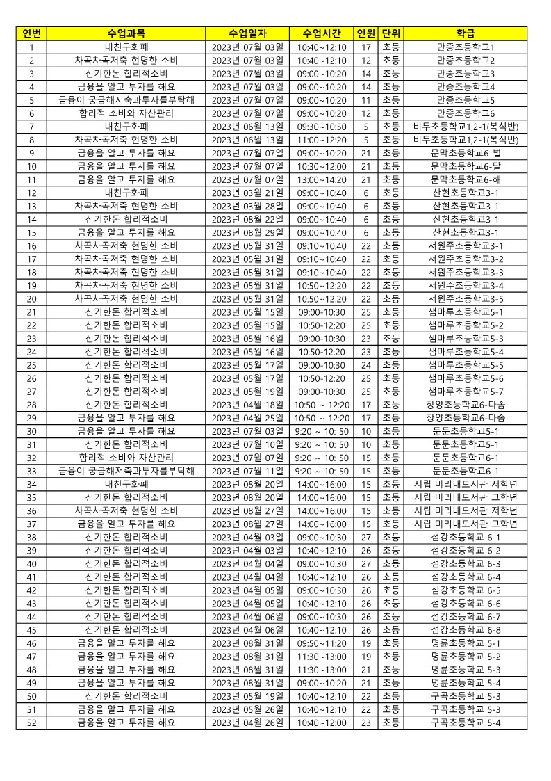 수업 진행 횟수에 한계가 있어 상반기 52회 수업을 선정하게 되었습니다.