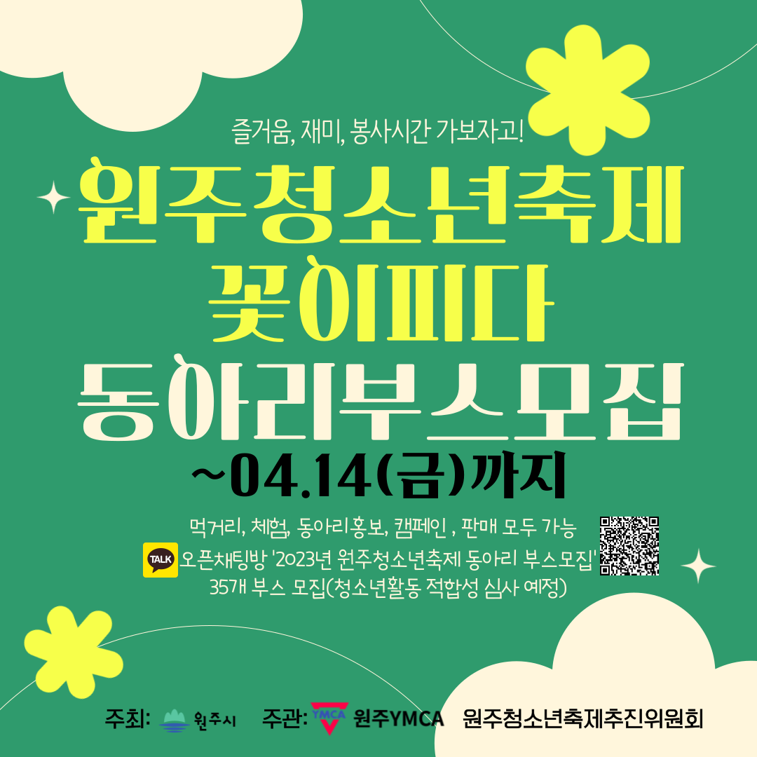 2023년 제21회 원주청소년축제"꽃이피다" 청소년동아리 부스 모집