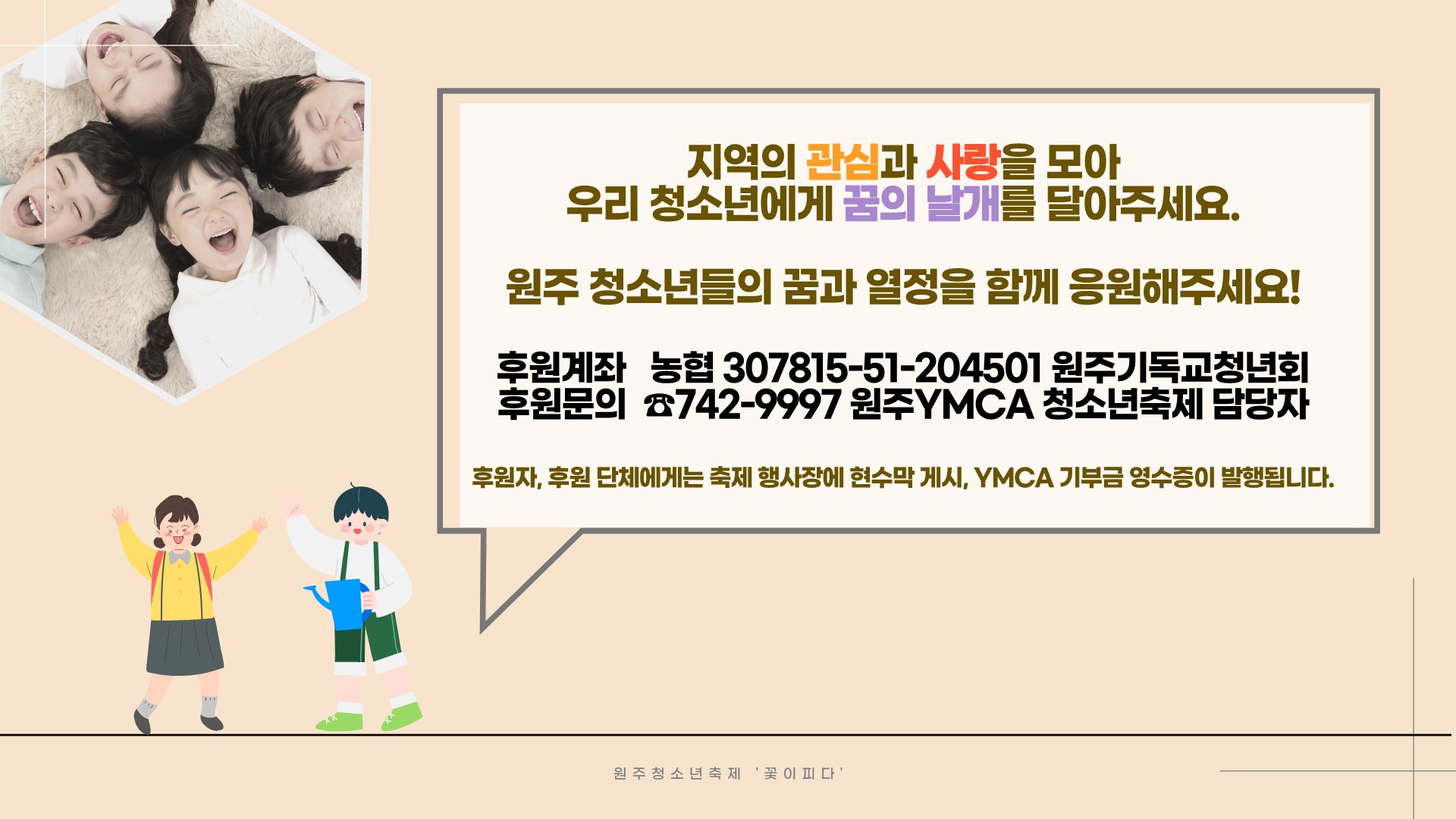 후원자에게는 원주YMCA 기부금 영수증이 발급됩니다.