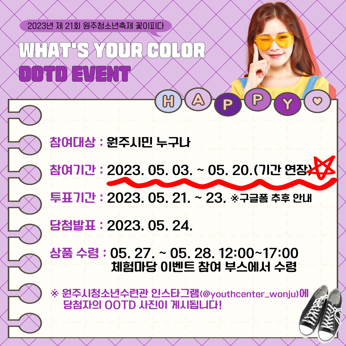 2023년 제21회 원주청소년축제 꽃이피다 OOTD 이벤트 기간 연장