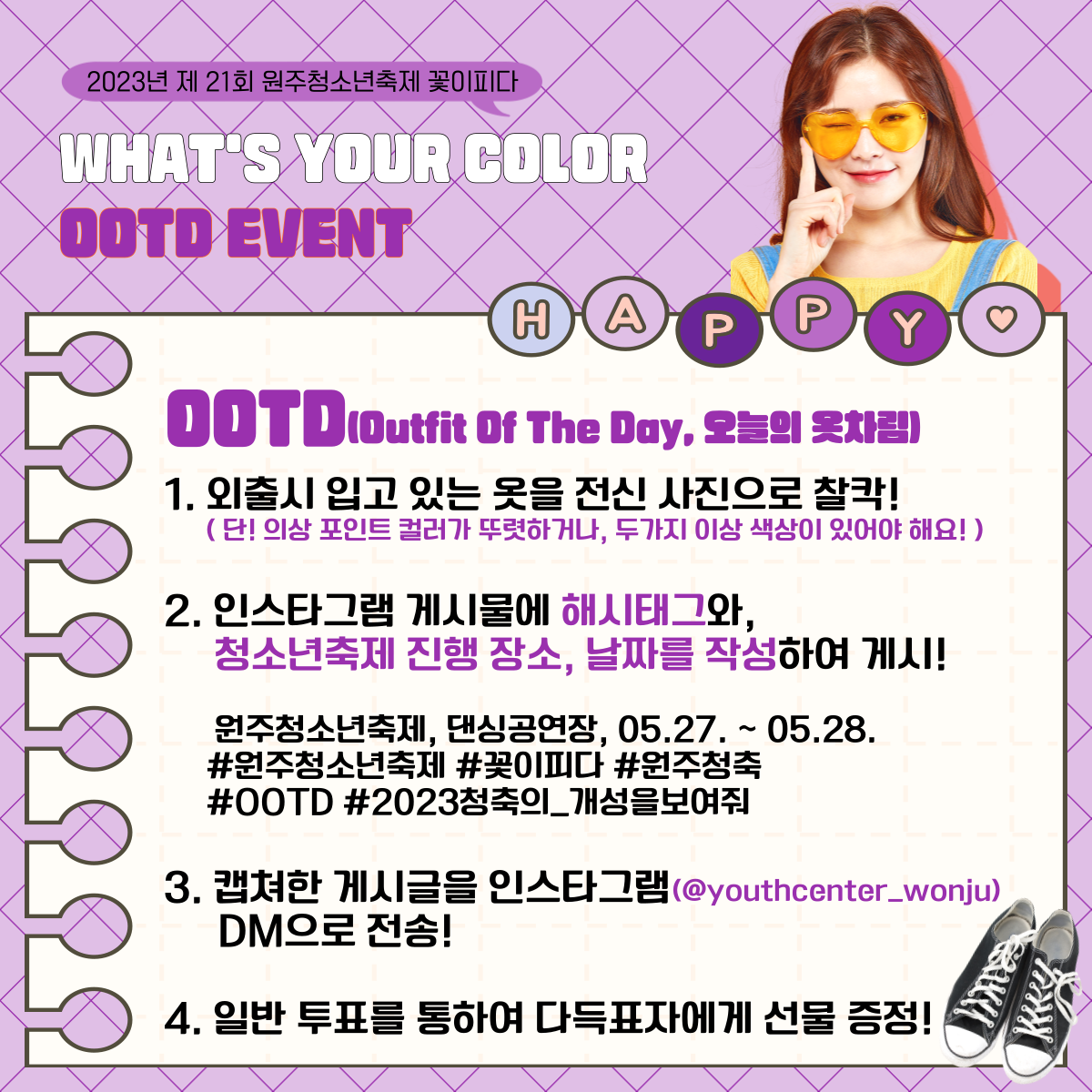 ※ 원주시청소년수련관 인스타그램(@youthcenter_wonju)에 당첨자의 OOTD 사진이 게시됩니다!
