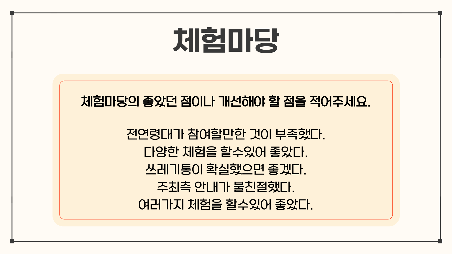 응답해주신 내용을 반영하여 더 풍성하고 멋진 축제로 돌아오도록 하겠습니다.