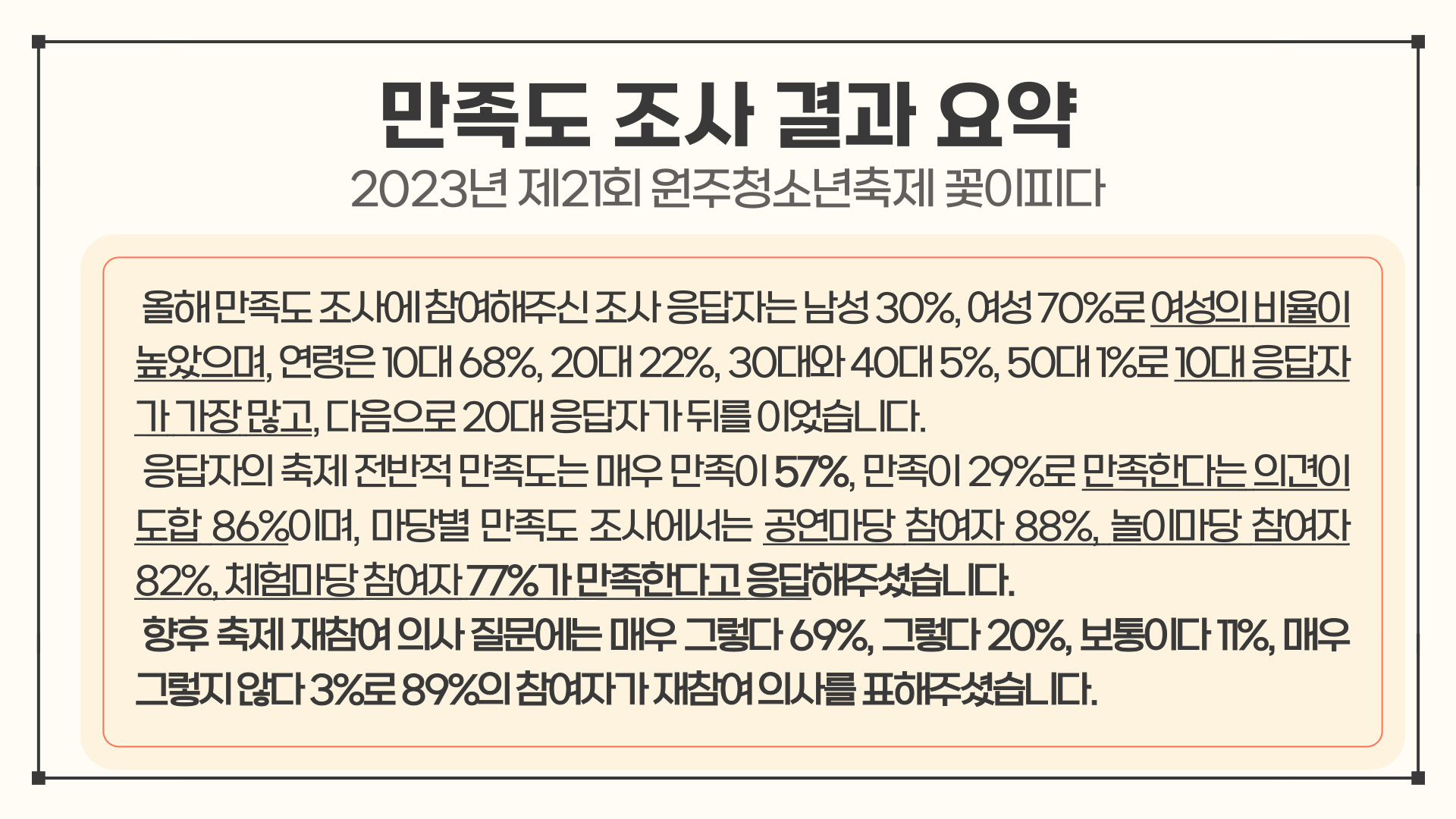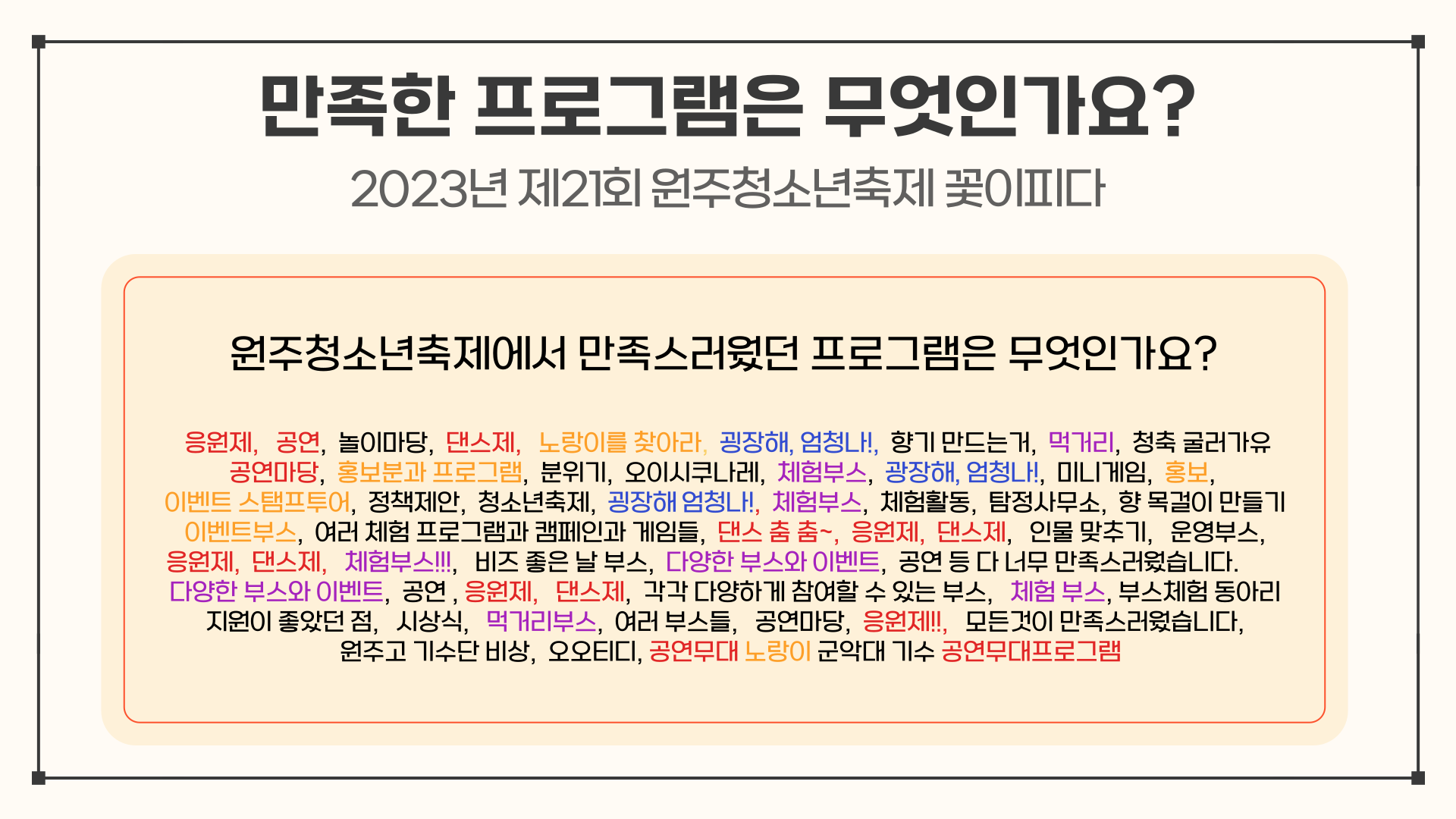 2023년 제21회 원주청소년축제 꽃이피다 만족도조사 결과 발표