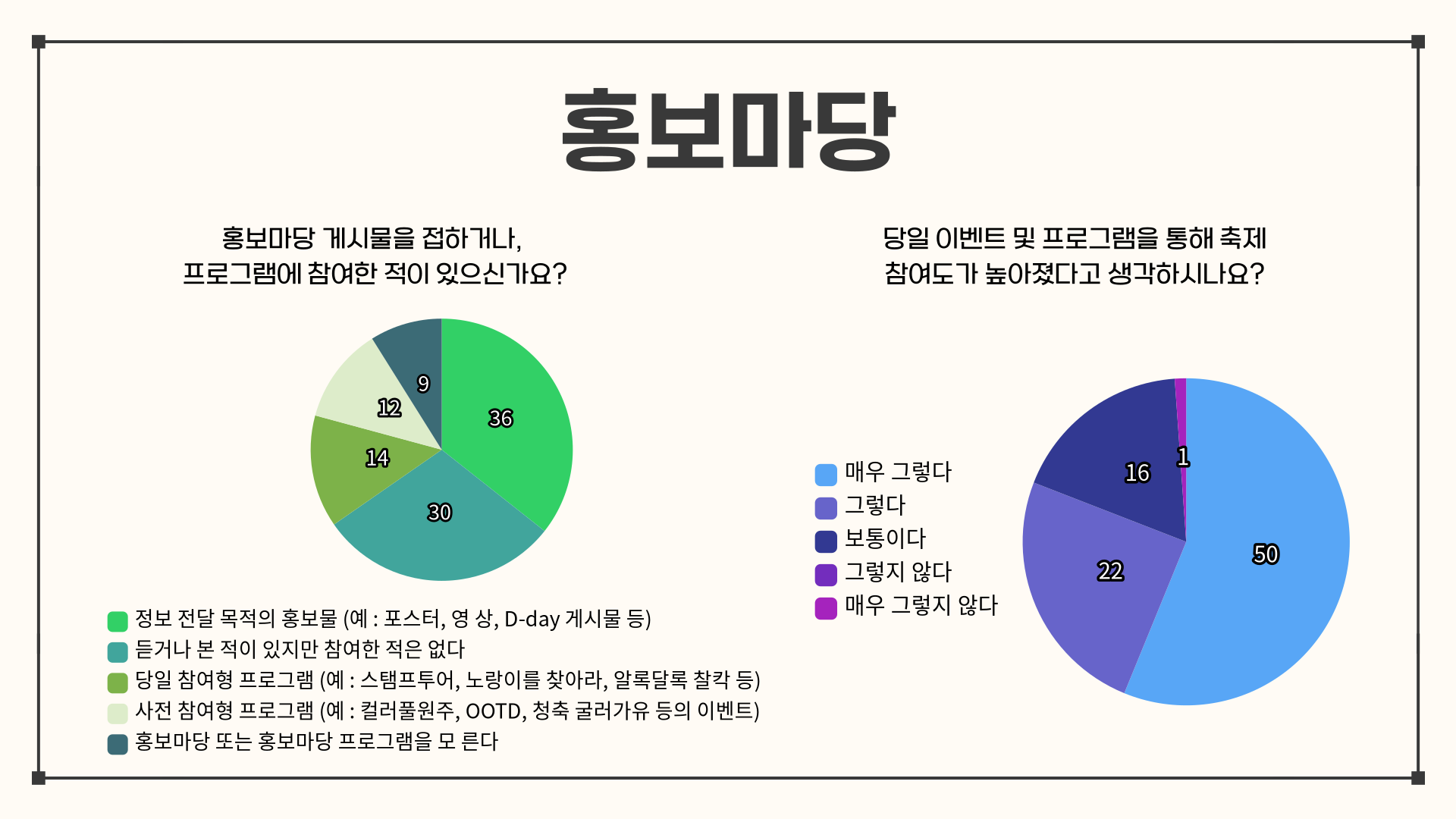 해당 만족도조사는 5월 27일~31일까지 5일간 축제 현장 및 온라인을 통해 진행되었습니다.