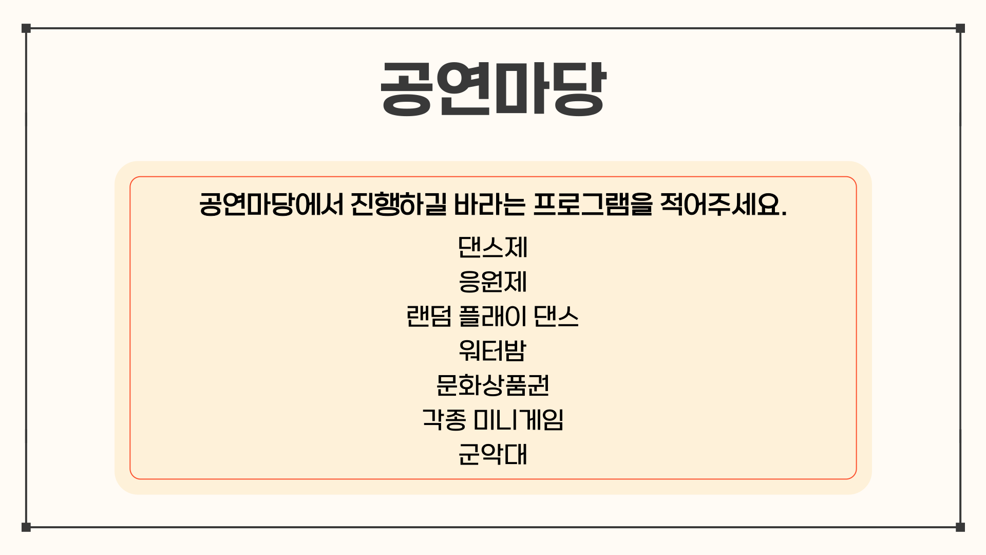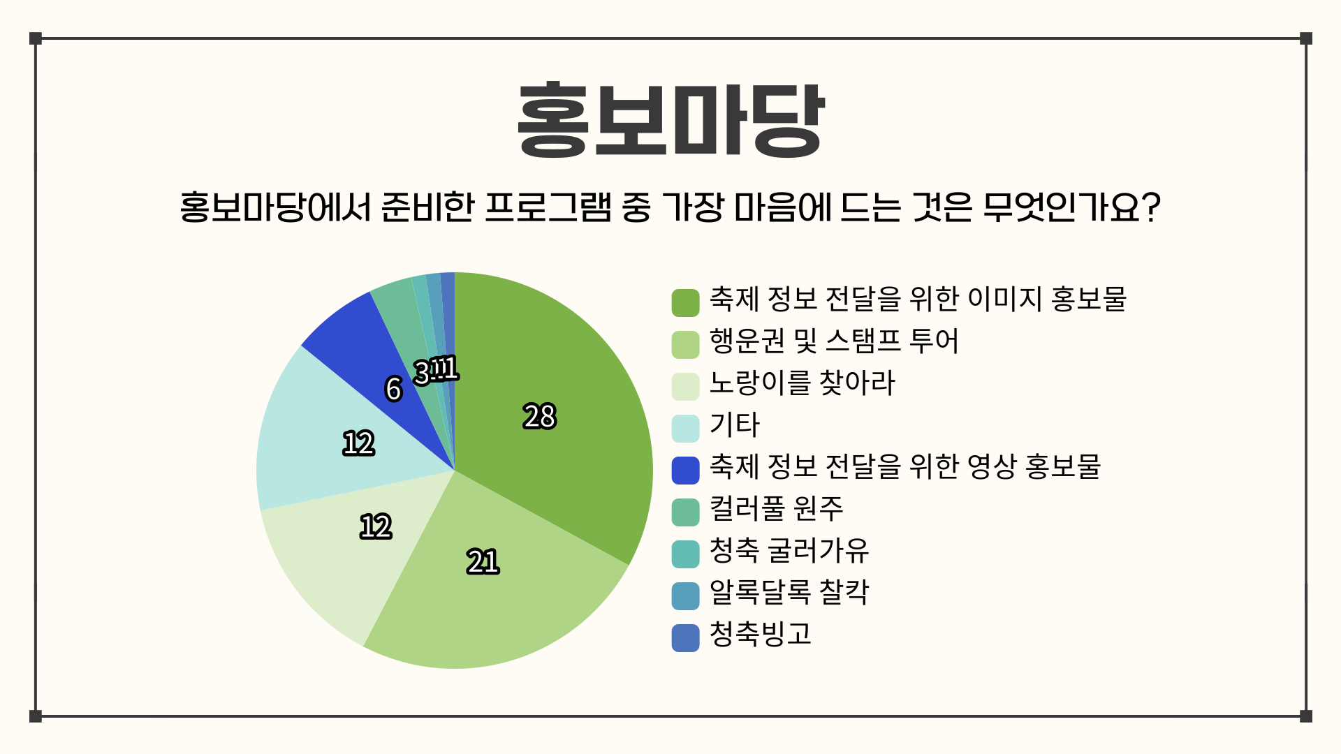 응답해주신 내용을 반영하여 더 풍성하고 멋진 축제로 돌아오도록 하겠습니다.