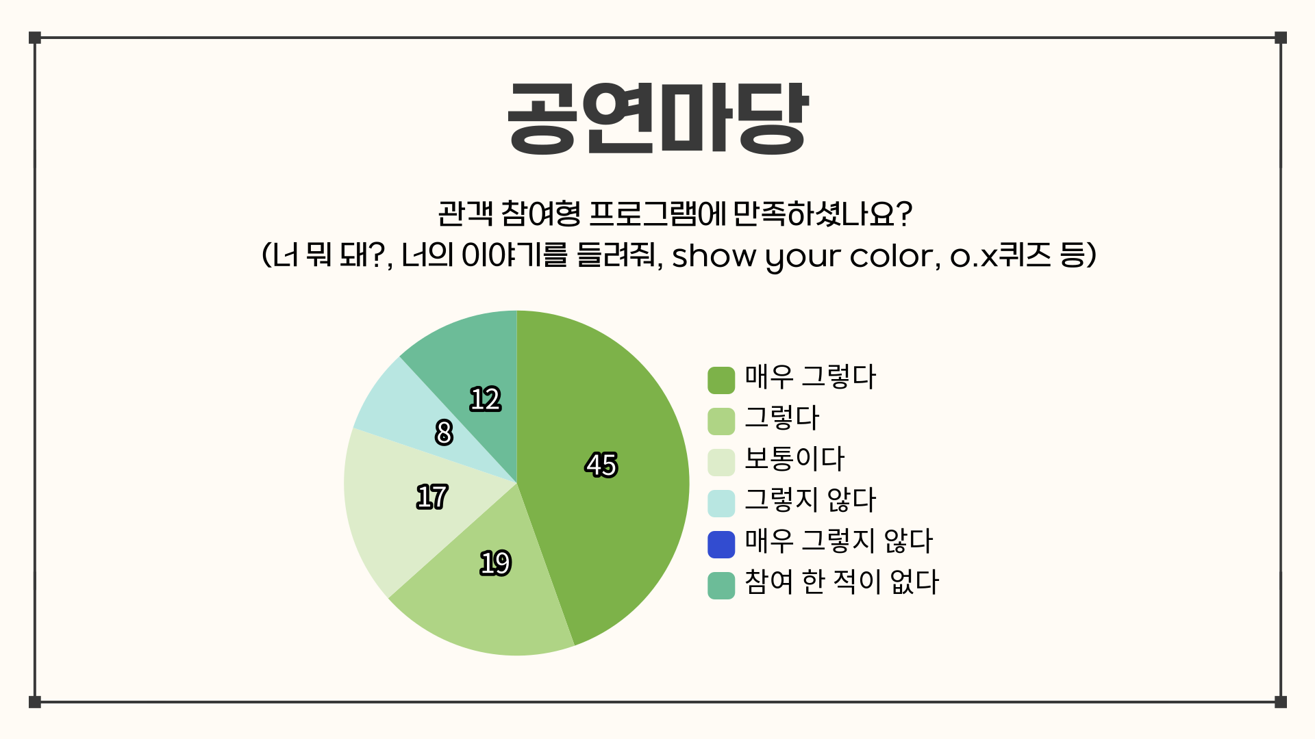 해당 만족도조사는 5월 27일~31일까지 5일간 축제 현장 및 온라인을 통해 진행되었습니다.