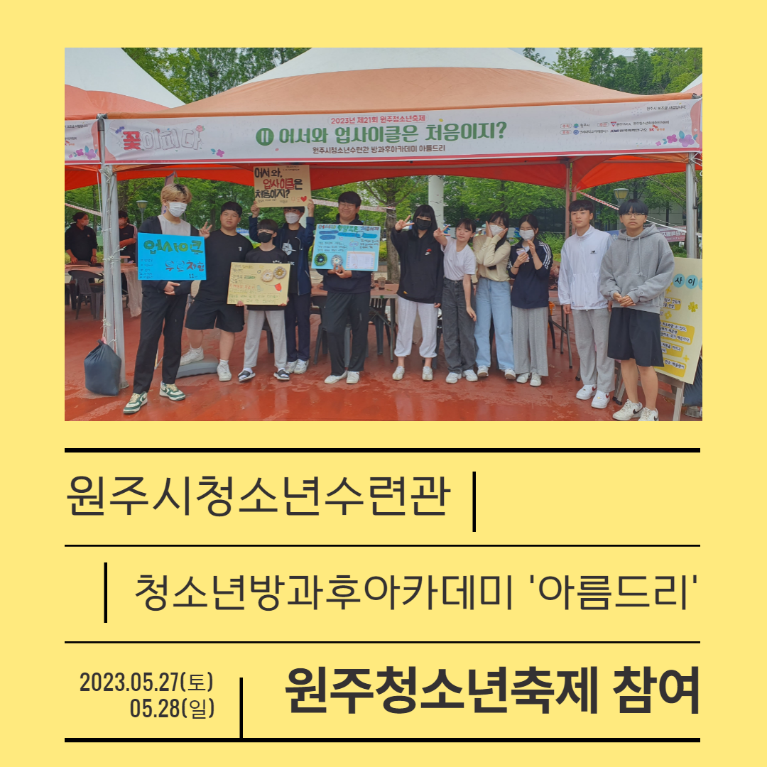 원주시청소년수련관 방과후아카데미 아름드리에서 함께 할 청소년을 모집합니다!
