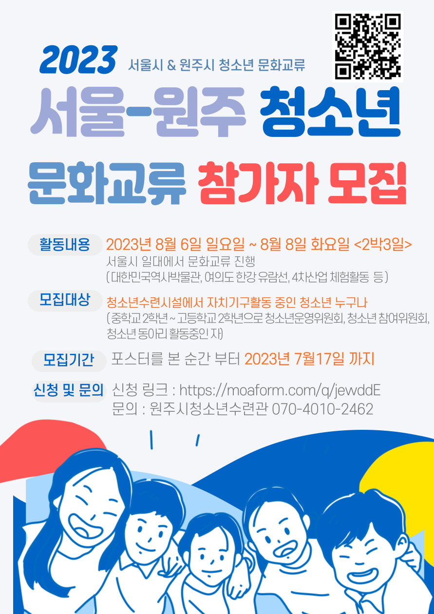 2023년 서울-원주 청소년 문화교류 참가자 모집