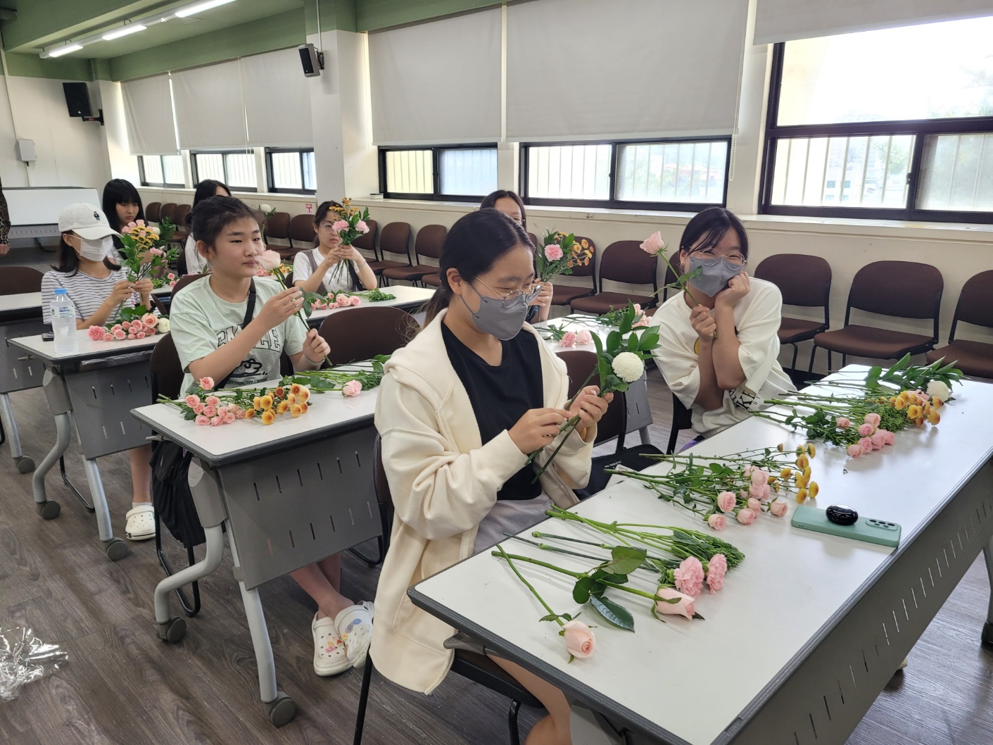 각자 예쁜 꽃다발을 만들어서 부모님께 선물한다고 하네요👍